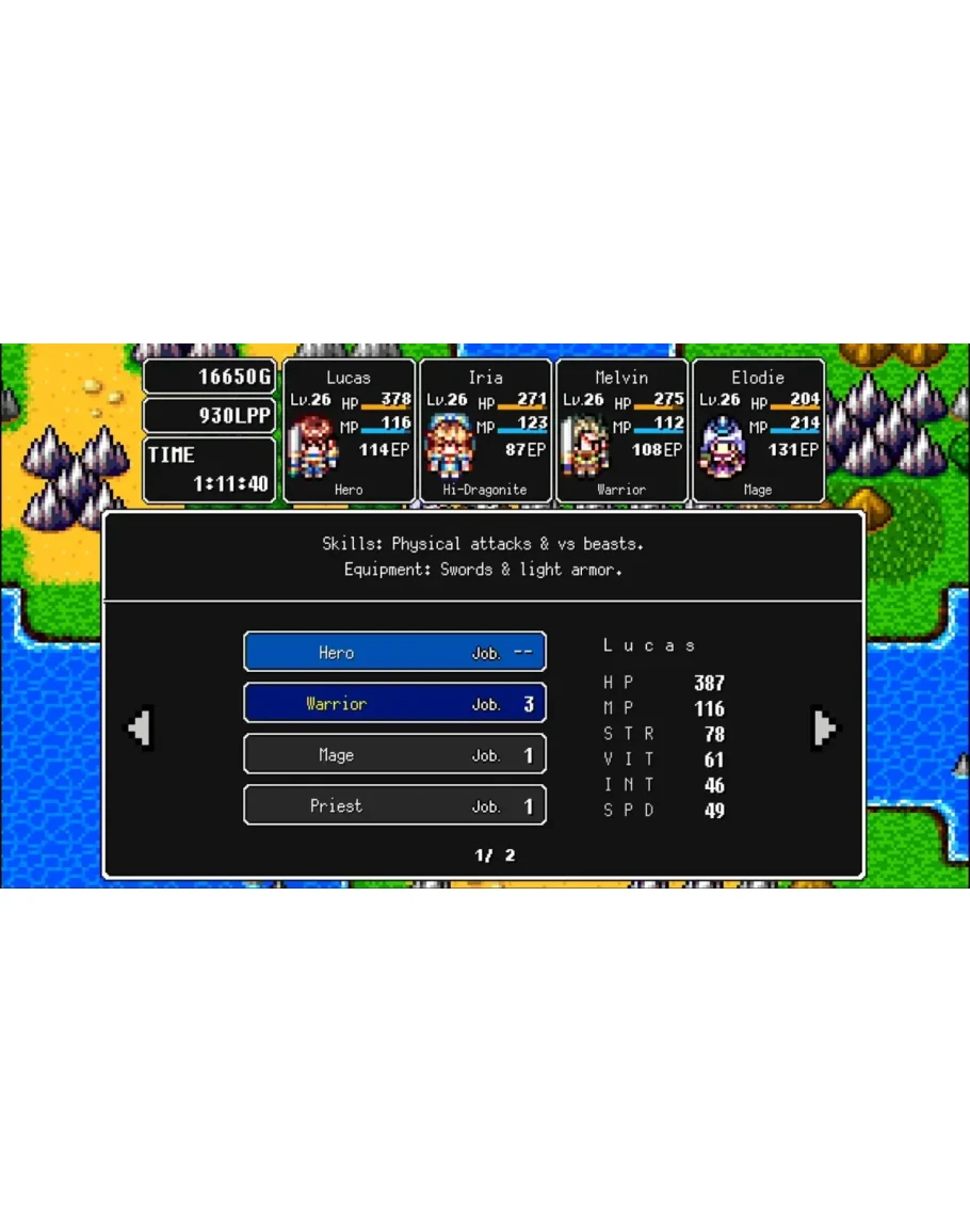Make a return to the golden age of RPGs with 8-bit graphics and chiptunes. By unlocking growth plates, characters are able to strengthen parameters, learn skills, and increase job rank! Master multiple jobs and live an adventure full of challenges and dungeons to explore!