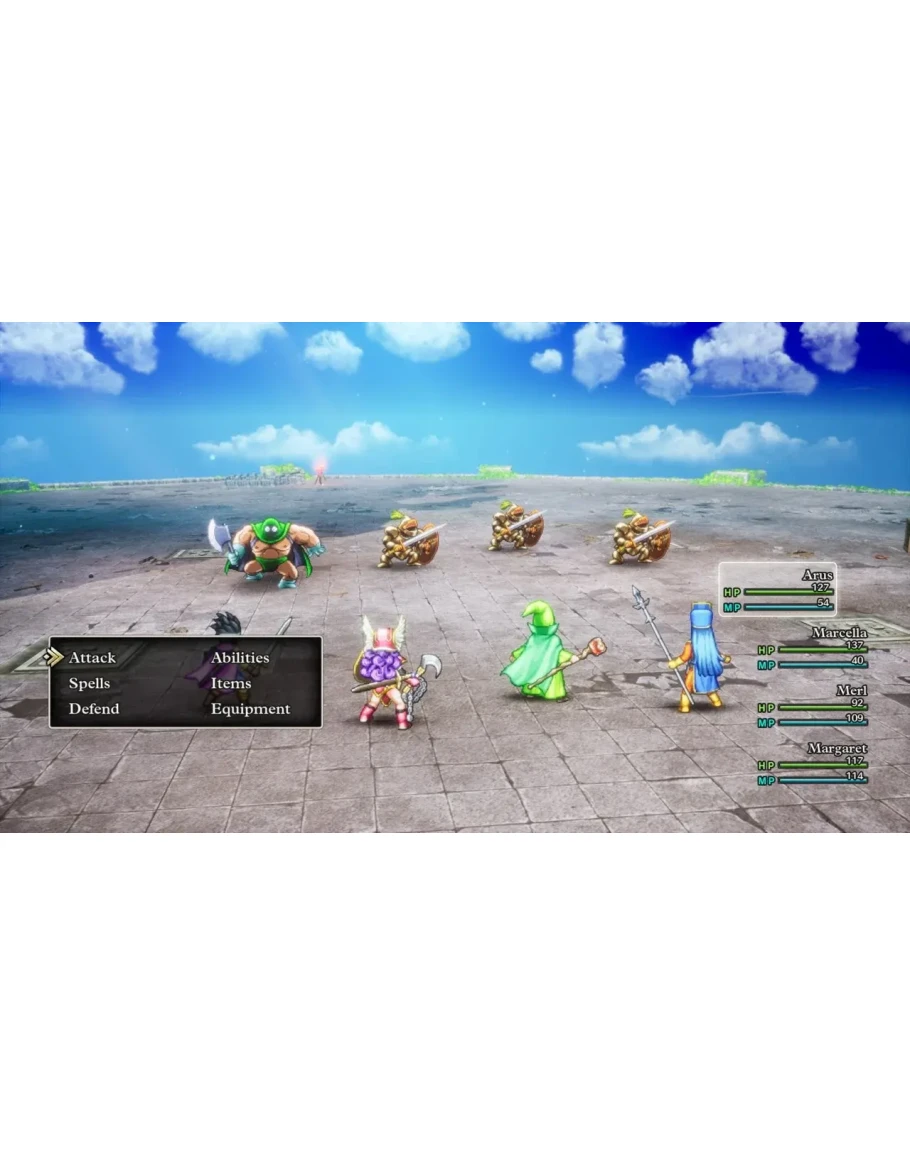 Сражайтесь со множеством разных чудовищ в классических походовых битвах DRAGON QUEST. Выбирайте тактику для своего отряда, меняя оружие, способности и заклинания бойцов, чтобы победить каждого врага.