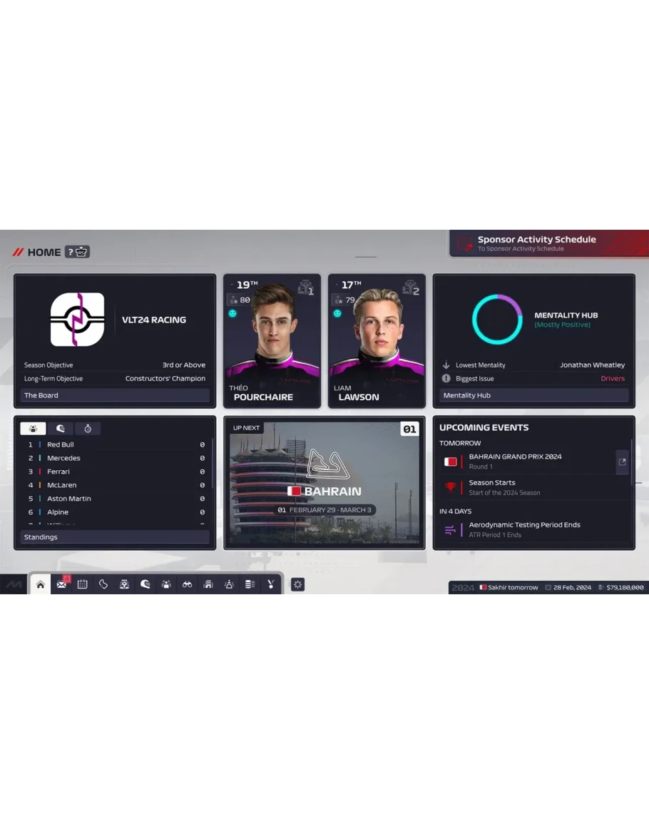F1® Manager 2024 © 2024 Frontier Developments plc. The F1 logo, F1, FORMULA 1 and related marks are trade marks of Formula One Licensing BV. All rights reserved to their respective owners.