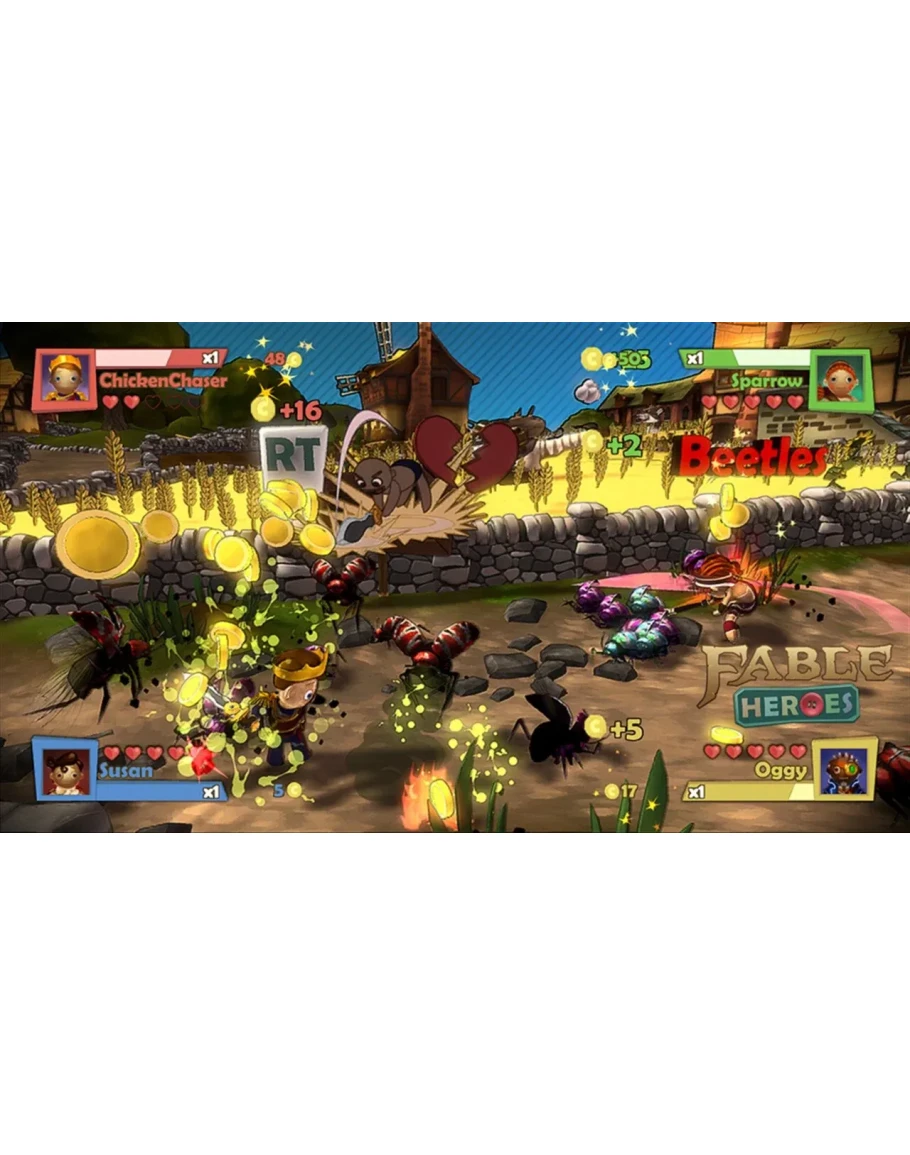 (Online Interactions Not Rated by the ESRB) Fable Heroes is a fresh spin on the beloved Fable franchise in which up to four players play both cooperatively and competitively in this hack-and-slash adventure. Work together as heroes of Albion to defeat familiar foes and new enemies while collecting as many gold coins as possible to unlock upgrades, characters, and items in both this game and Fable: The Journey for Xbox 360.