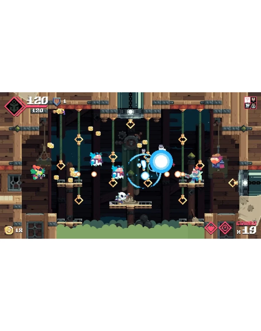 Перемещайся по локациям со сверхскоростью благодаря своим мощным броскам крюком! Спокойно прицеливайся и бросай гигантский якорь в золотые кольца, тем самым передвигаясь по уровням на высокой скорости и с ловкостью и проворностью, которые просто необходимы, чтобы уклоняться от препятствий и вражеских пуль.