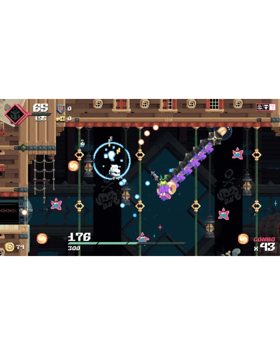 "Flinthook – это экшн-платформер с элементами игр roguelike. Стань величайшим пиратом в истории космоса благодаря своему броску крюком, пистолету и способностями к замедлению действий!