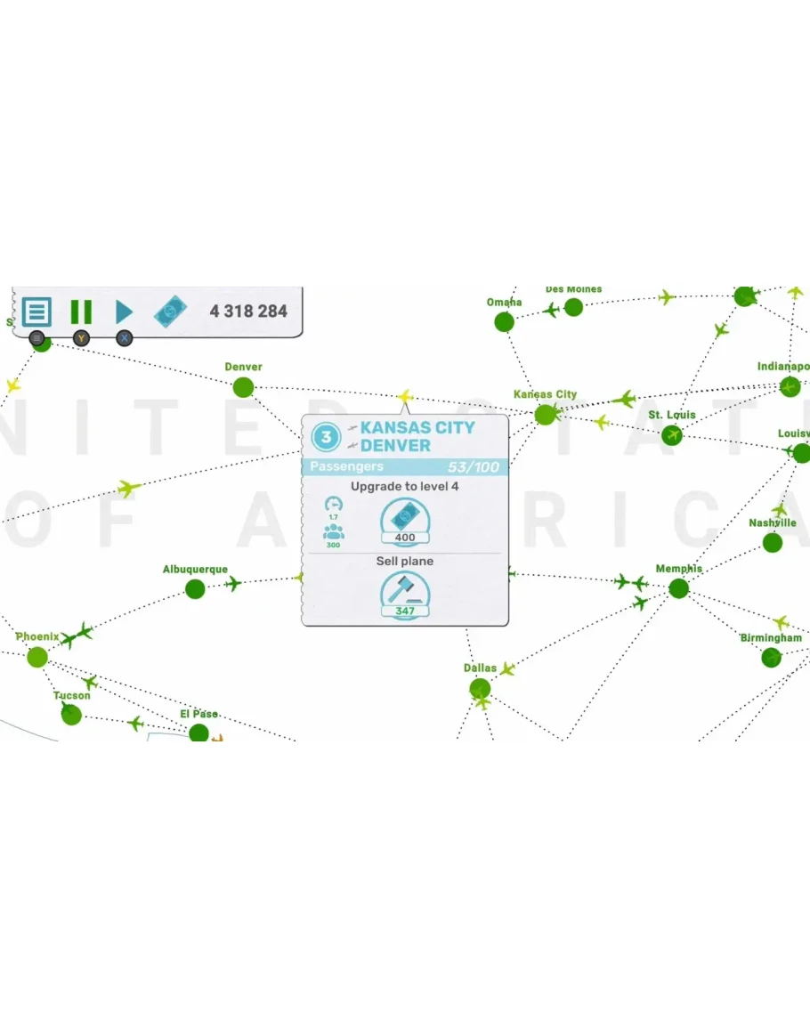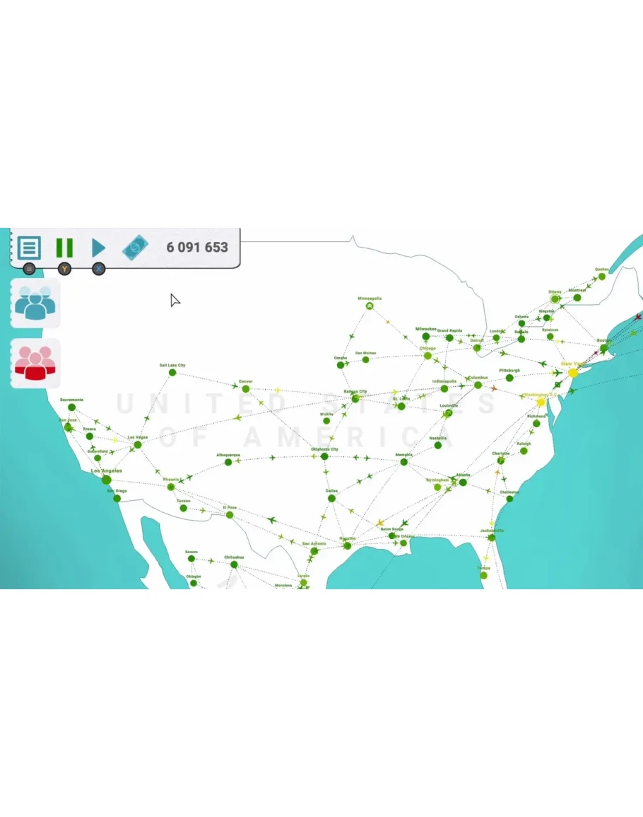 Благодаря продвинутой системе пассажиропотока каждый город имеет реалистичное население, и чем больше город, тем выше спрос на рейсы в различные направления. Вы не можете позволить себе напрямую соединить каждый город, поэтому вам придется стратегически подходить к делу, создавать эффективные узлы и предотвращать перегрузки аэропортов. Если какой-либо аэропорт достигнет предела вместимости, игра окончена.