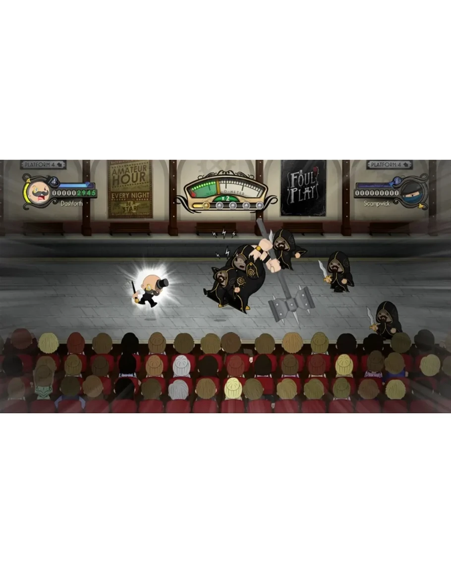 Play as the daemon hunter Baron Dashforth in a side-scrolling brawler set ENTIRELY on a theatre stage.Perform shattering takedowns and reversals! Electrify spectators with linked attacks, have a friend join as sidekick Scampwick and use every stage-trick you know to bring the house down!Play out the most spectacular moments of the Baron’s life; improbable beasts, astonishing villainy and, at the heart of it all, the mysterious Foul Play.