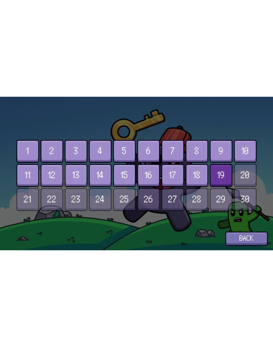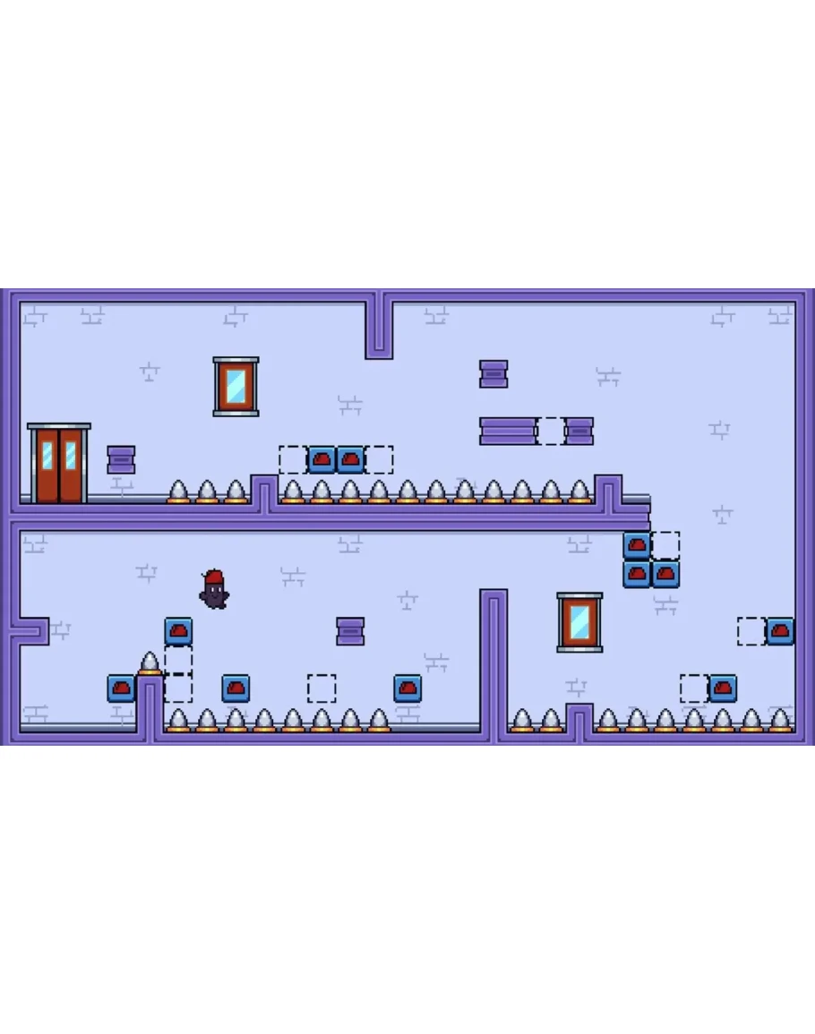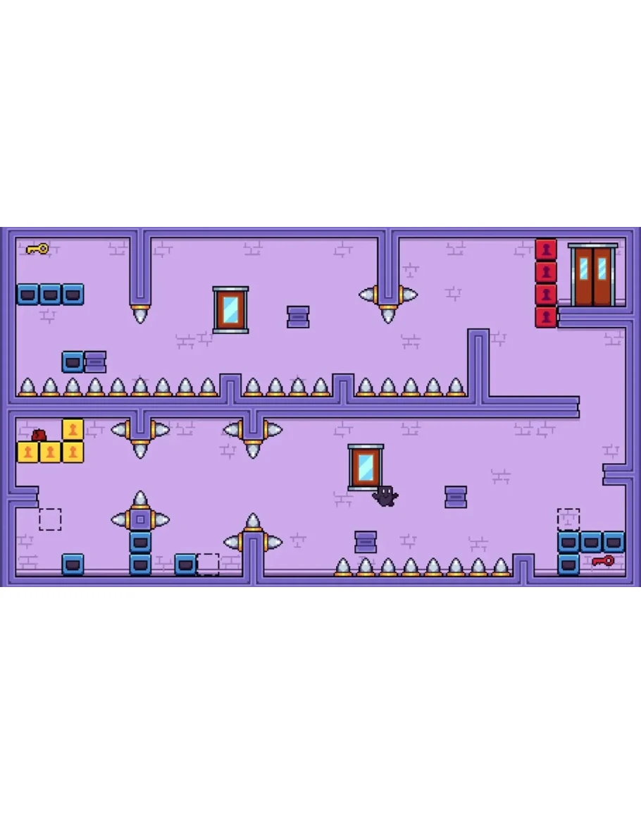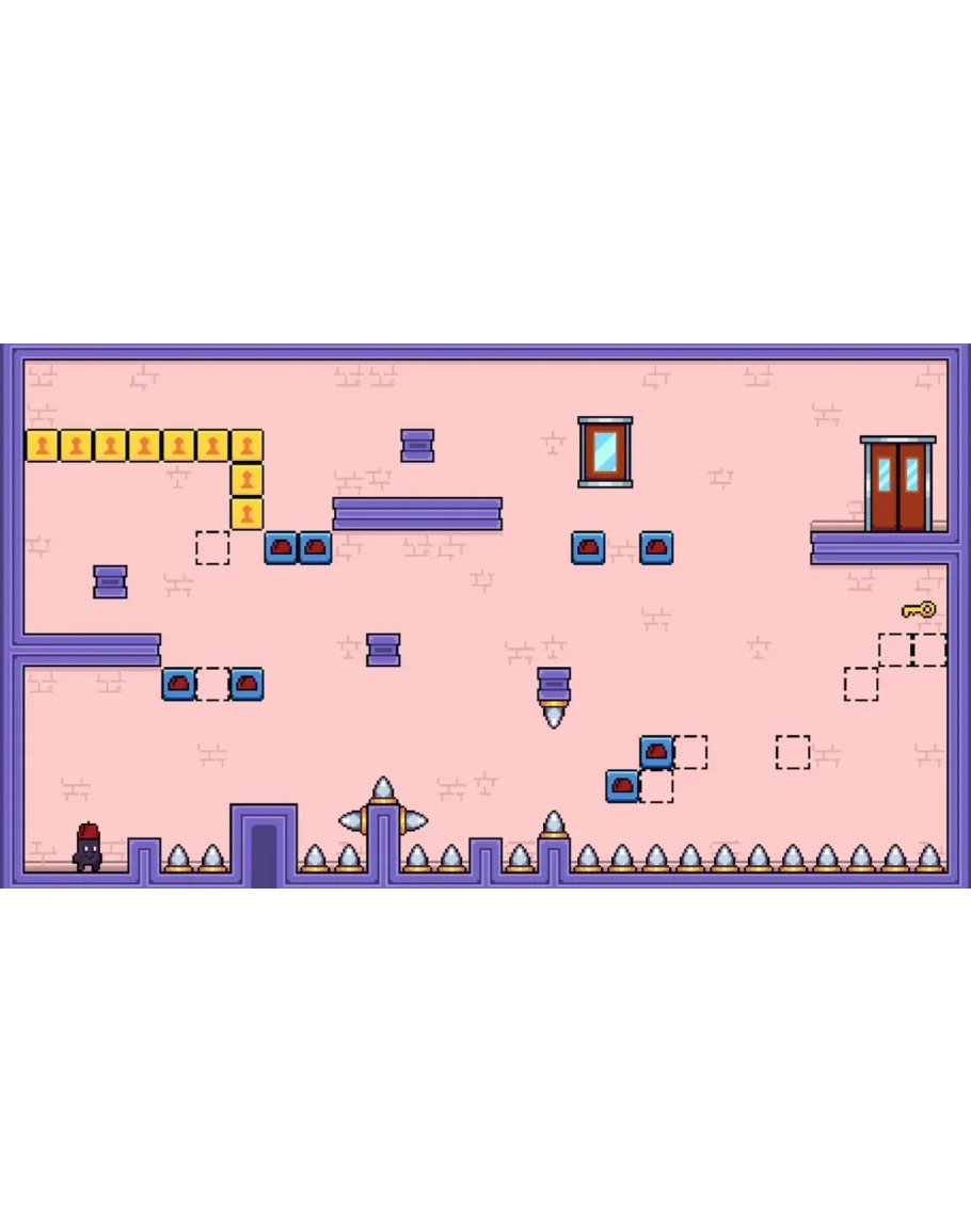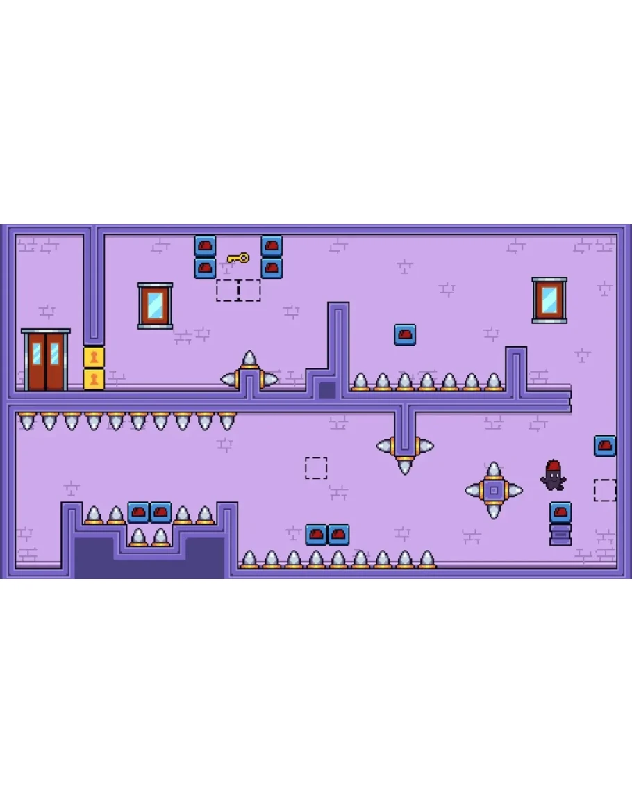 Возьмите на себя роль маленького пурпурного гуманоида, проходящего замысловатые этапы головоломки, которые меняются в зависимости от того, носит ли он свою феску или нет! Hatup — это прецизионный платформер с одноэкранными этапами, где цель состоит в том, чтобы избегать шипов и других ловушек, собирая ключи и переключая платформы.