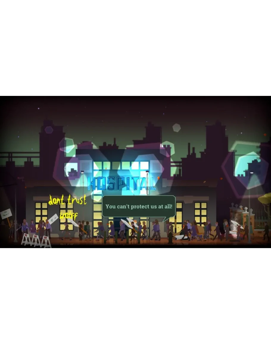 After work, you emerge on the streets of Novistan, shaped by the very news you publish. Perhaps you will see more graffiti, angry bums or even a riot? Or perhaps you will turn the nation into peaceful utopia, filled with cameras and drones watching your every step? How will your channel address tragic events about to happen? Will you agree to meet the clandestine group of truthtellers, or stop to watch the Prime Minister's speech?