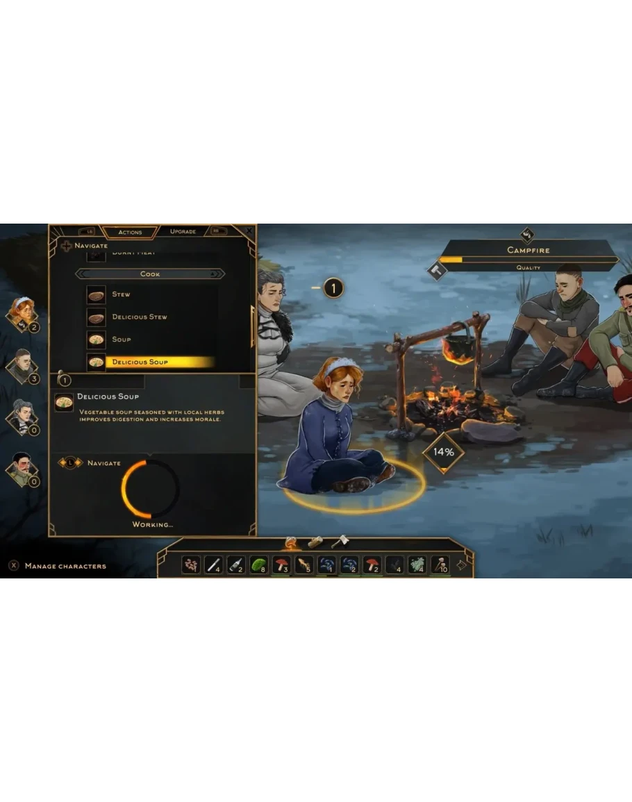 Игра посвящена выживанию персонажей: накоплению ресурсов, закладке лагеря, обследованию окрестностей. Для победы необходимо наладить отношения персонажей и умело управлять скудными ресурсами.