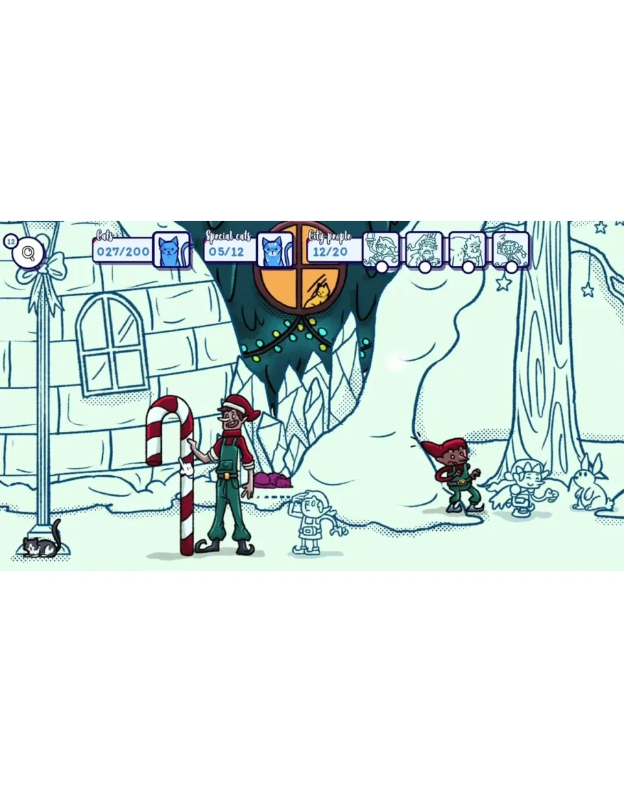 Заходите на праздник и найдите всех котиков, спрятанных среди эльфов, чтобы раскрасить город!