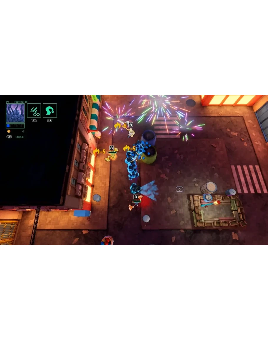 Игра в жанре twin-stick shooter и roquelike, где каждое прохождение — уникально. Управляйте 60 персонажами в роли враждебного инопланетного паразита. Пробейтесь на вершину пищевой цепочки: захватите президента, нажмите на большую красную кнопку и одолейте