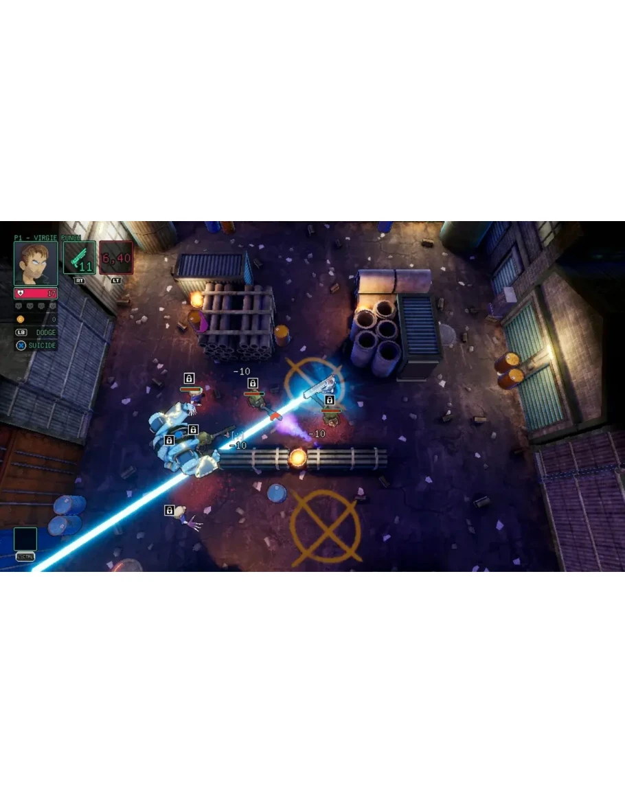 Будьте беспощадны, перемещаясь по процедурно сгенерированным суровым улицам безнадежного будущего в этом roguelike twin-stick шутере.