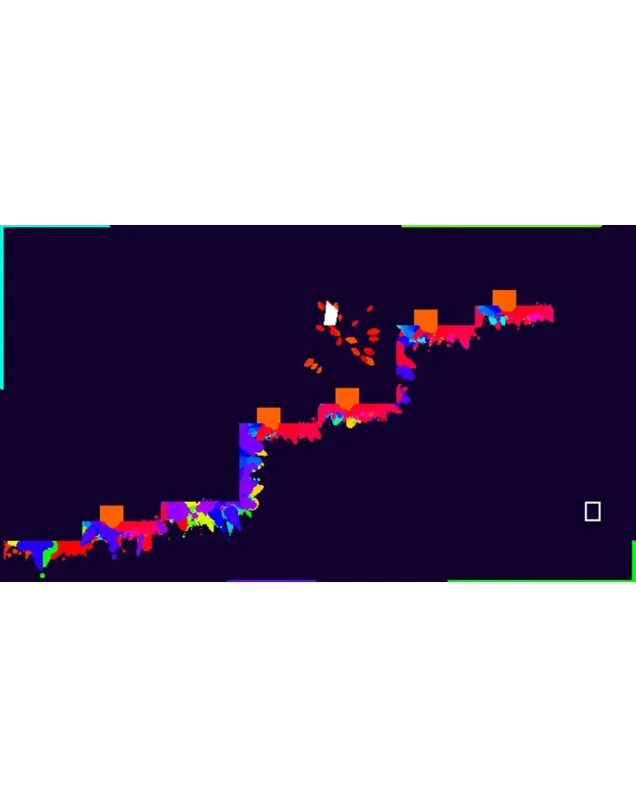 INK is a fast-paced platformer about using colorful paint to uncover your surroundings. INK has a similar feel to hardcore platformers like Super Meat Boy. The object of each level is to defeat all of the enemies in the room (if any) and reach the goal. However, the terrain is invisible to the player. The player can discover terrain by physically bumping into it, or by performing a double jump. The double jump sprays paint bullets out of the player and increases the player’s awareness of their surroundings. If the player happens to bump into spikes or falls to their death, paint will also shoot out from the player’s last position. The room isn’t wiped clean after death so that the player has an easier time navigating after multiple attempts!