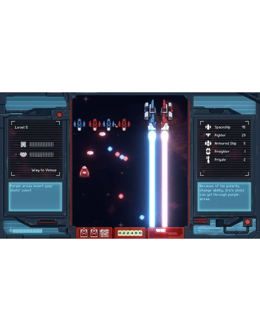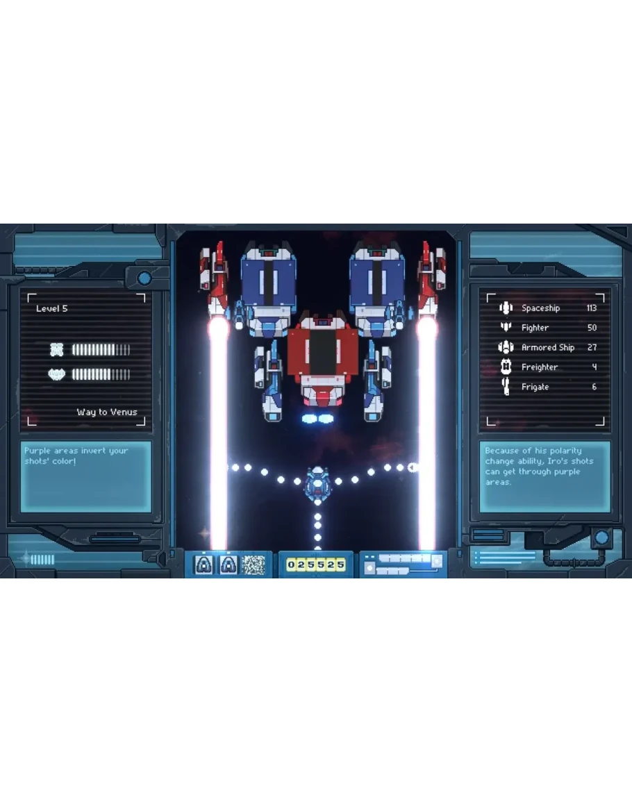 Iro Hero - это вертикальный скролл-шутер с живописной пиксельной графикой, вдохновлённой классическими олдскульными играми. Разделив геймплей на 9 остросюжетных уровней, Iro Hero предлагает уникальный, свежий подход к механике цветовых полярностей, используя интерактивные элементы, цветовые зоны, отражающие поверхности и многое другое.