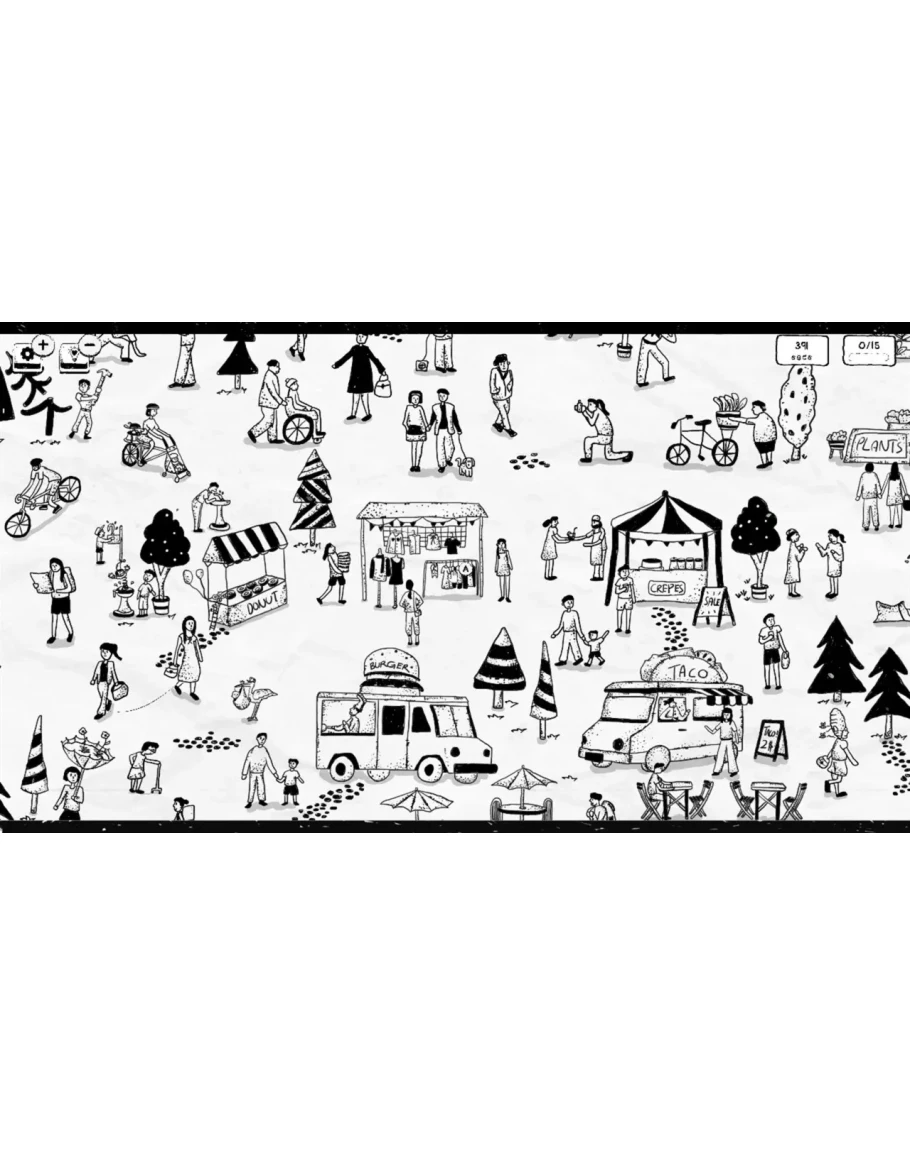 Черно-белые изображения в стиле дудл-арт делают игру сложной.
