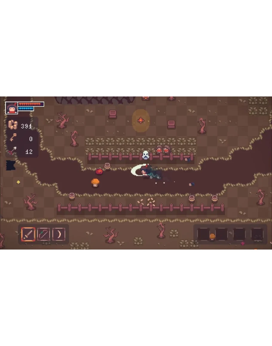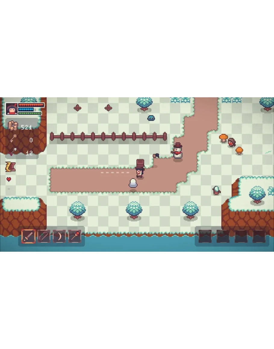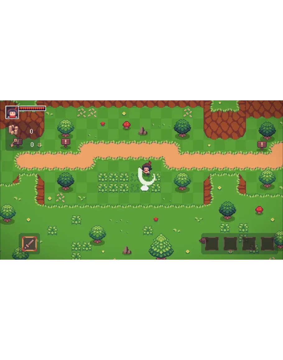 Ваш арсенал включает мечи, луки, бумеранги, магические посохи и бомбы. Посещайте кузницу, чтобы улучшать оружие и экипировку, становитесь сильнее, покупая ресурсы в местном магазине, и открывайте древние секреты алхимии, создавая зелья у мудрой ведьмы.