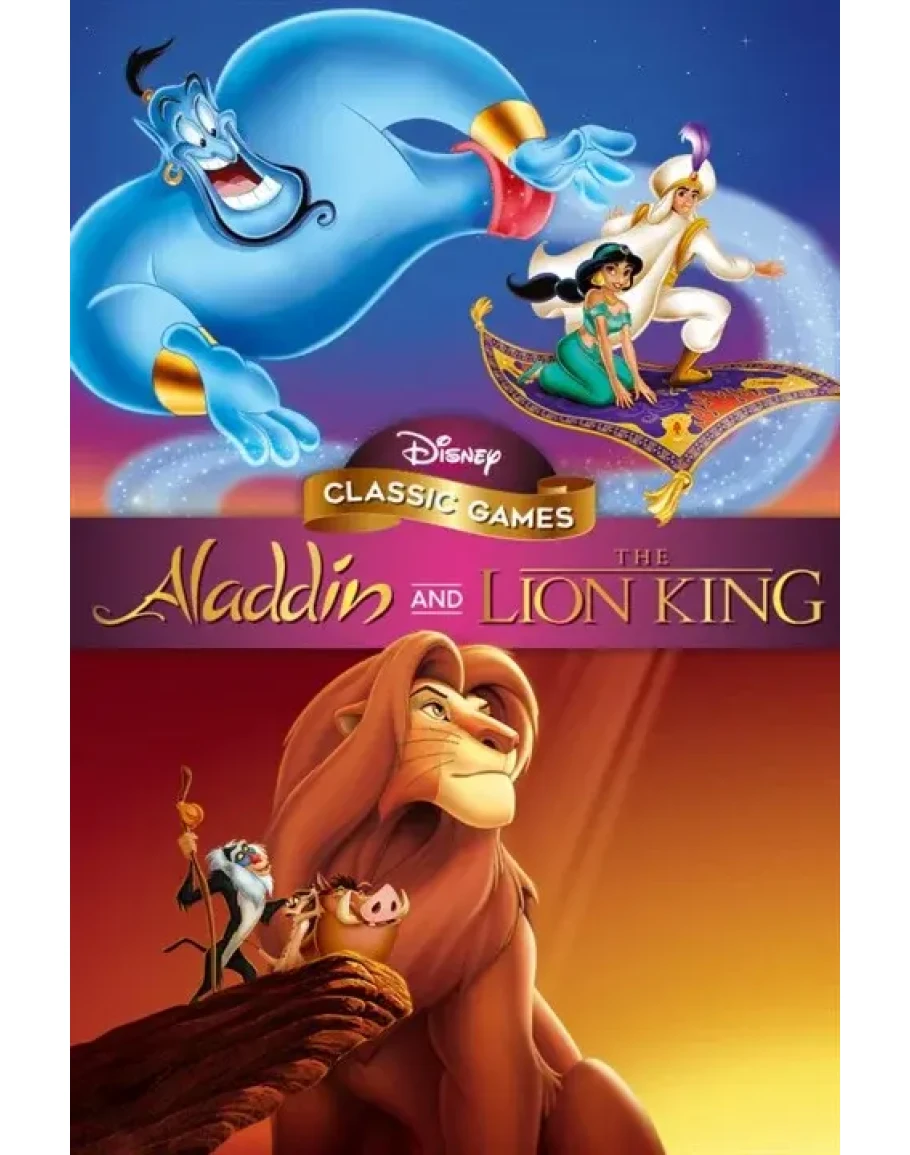 Анонсировано долгожданное возвращение двух самых любимых игр Disney всех времен в версии «Классические игры Disney: „Алладин“ и „Король Лев“» (Disney Classic Games: Aladdin and The Lion King) для современных консолей! Этот незабываемый пакет классических игр от Disney в изобилии содержит новые функции, улучшения, игровые режимы и параметры отображения, а также несколько версий игр! Присоединяйтесь к Аладдину и его закадычному другу Абу, мчащимся по рынку на встречу с судьбой. Оживите в памяти классические приключения Аладдина, путешествуя по Аграбе, Пещере Чудес и другим местам, побеждая Джафара и спасая Жасмин. Прыгайте, сражайтесь, уворачивайтесь и летайте на волшебном ковре, собирая по пути драгоценные камни. «Король Лев» — это напоминающая о былом величии и загадке Африки сказка о львенке Симбе, столкнувшемся с непростым периодом взросления и созревания. Теперь вы тоже можете принять участие в приключении! Отправленный в джунгли своим злым дядей Шрамом, Симба находит там пристанище и встречает новых друзей — суриката Тимона и бородавочника Пумбу, живущих под девизом «Акуна Матата» («Беззаботная жизнь»). Сразитесь с отвратительными гиенами на Слоновьем кладбище, не дайте несущемуся в панике стаду антилоп гну затоптать себя копытами; пройдите все 10 уровней, чтобы львенок Симба занял свое законное место в качестве Короля.