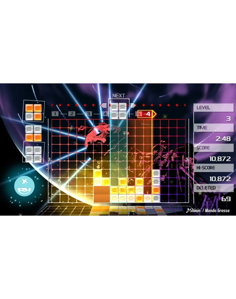 LUMINES REMASTERED привносит минимализм в жанр головоломок: на фоне слияния света и звука разворачивается захватывающее действие с двухцветными падающими блоками в HD и 4K. Залипайте под драйвовые электронные композиции, стратегически размещая блоки, в то время как полоса ударов в минуту очищает комбинации после каждого такта.