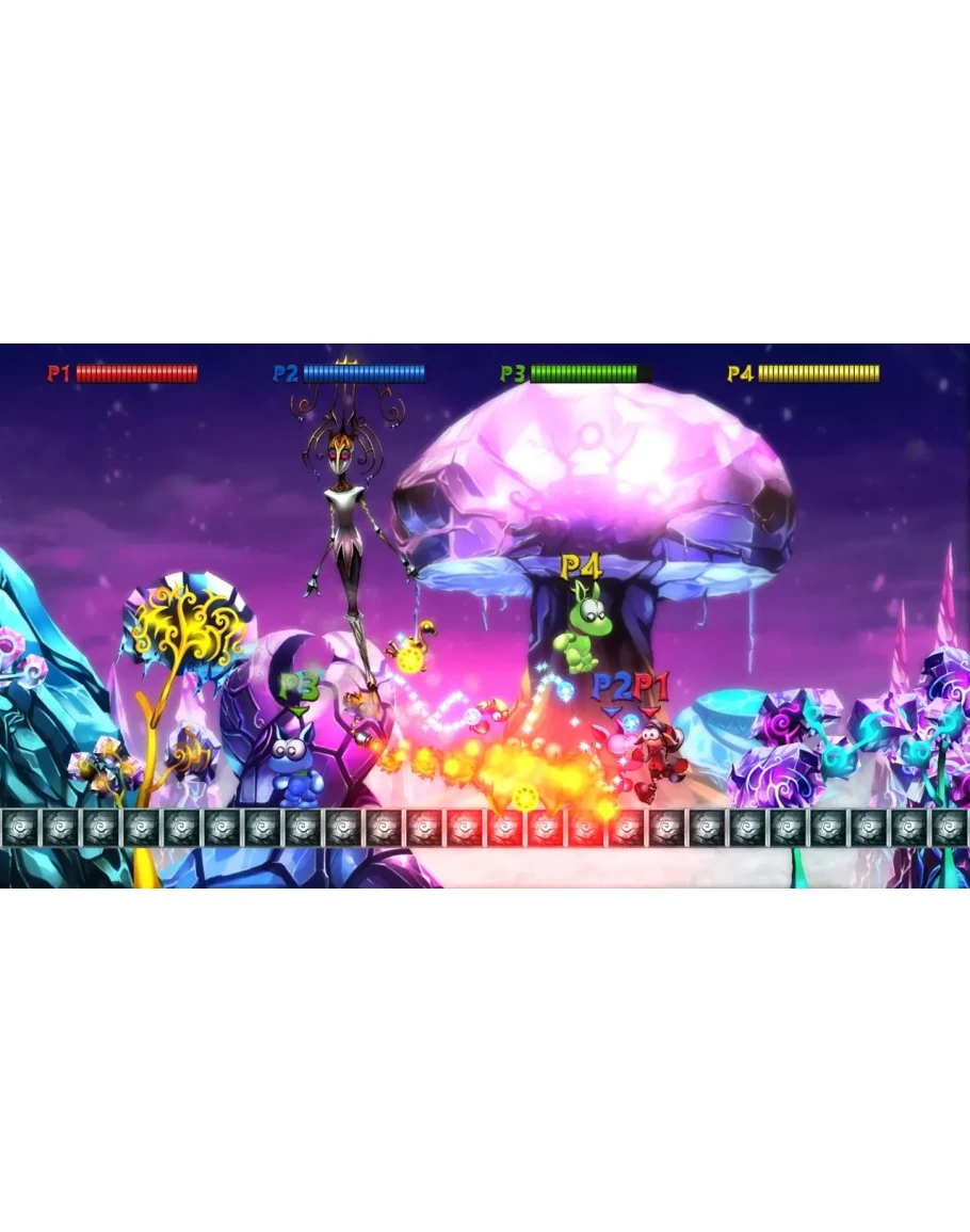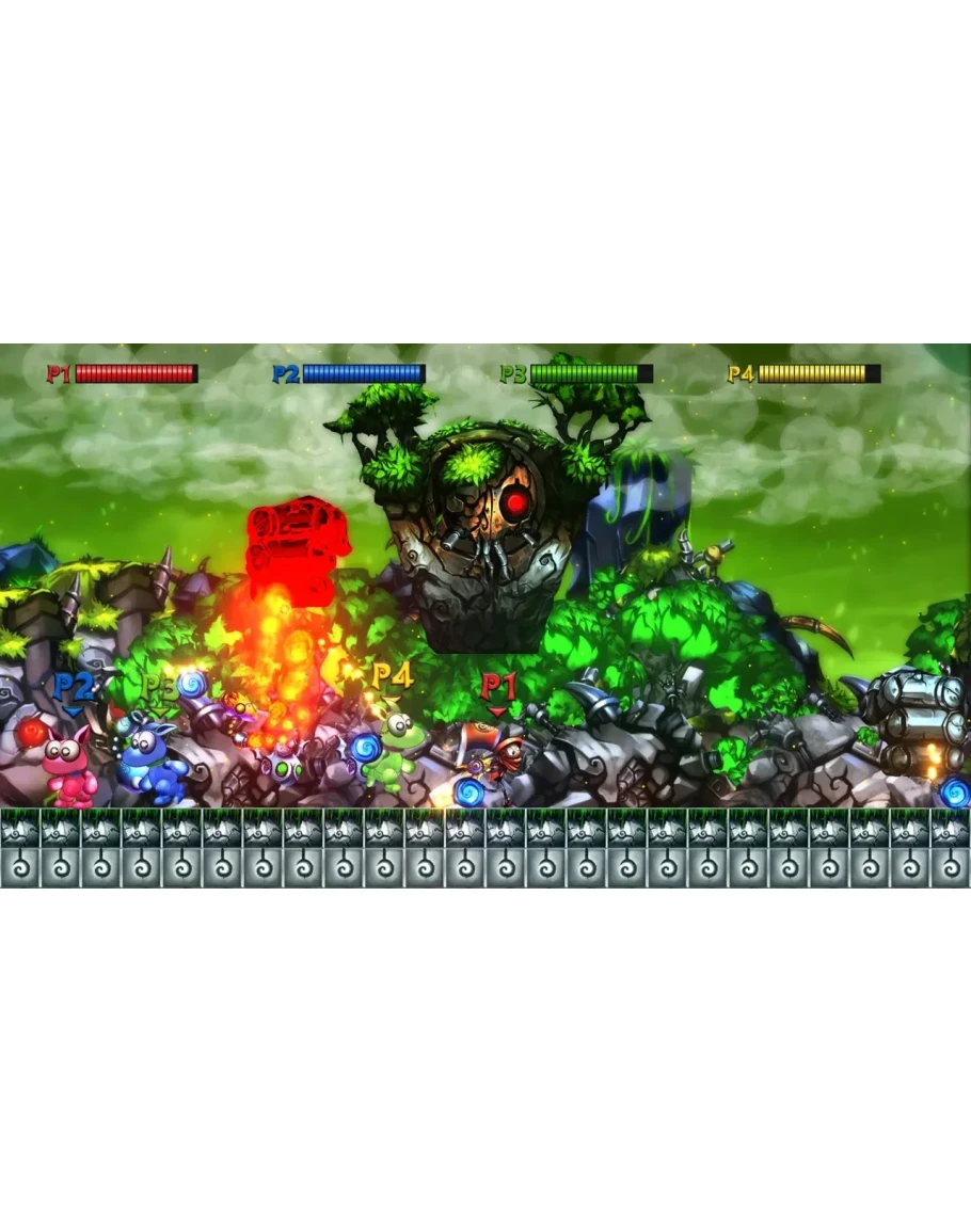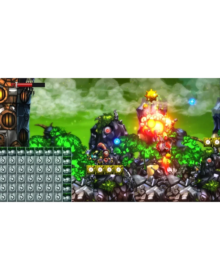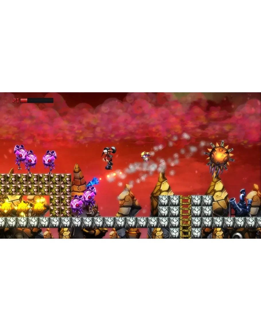 An all-new adventure in the world of Mecho Wars! Run and shoot through chaotic platforming levels filled with spikes, bottomless pits and an army of deadly robots. Go it alone or team up with your friends in 4-player local multiplayer. Directed by Luc Bernard.