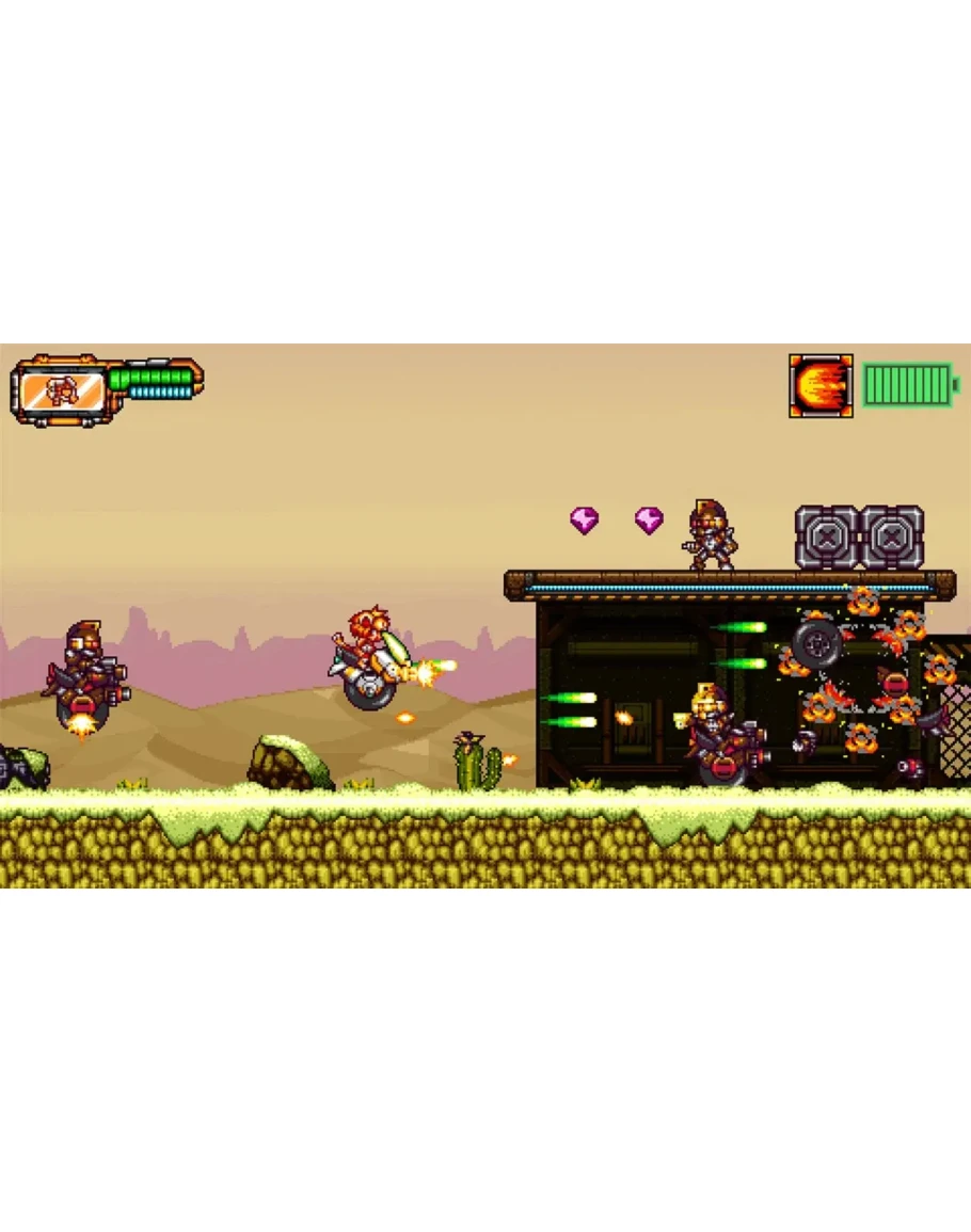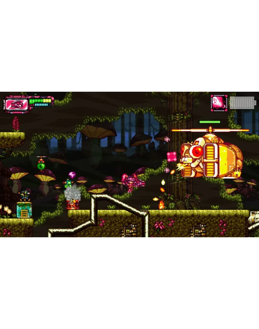 Choose and play as one from three characters which all offer different set of abilities and weapons!, Play as Erika and flood entire screen with barrage of bullet fire, alternatively reduce giant enemies to ashes in the blink of an eye as Zeta using atomic thunder or fly as Neva across the level equipped with jetpack to bring aerial doom.
