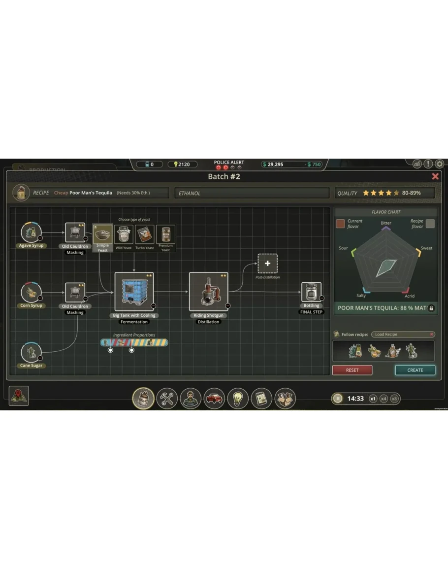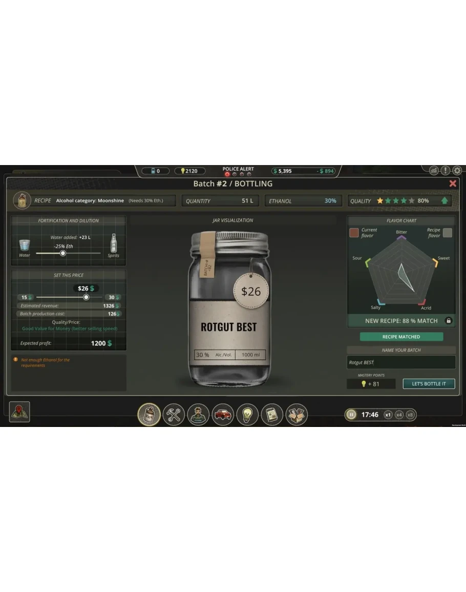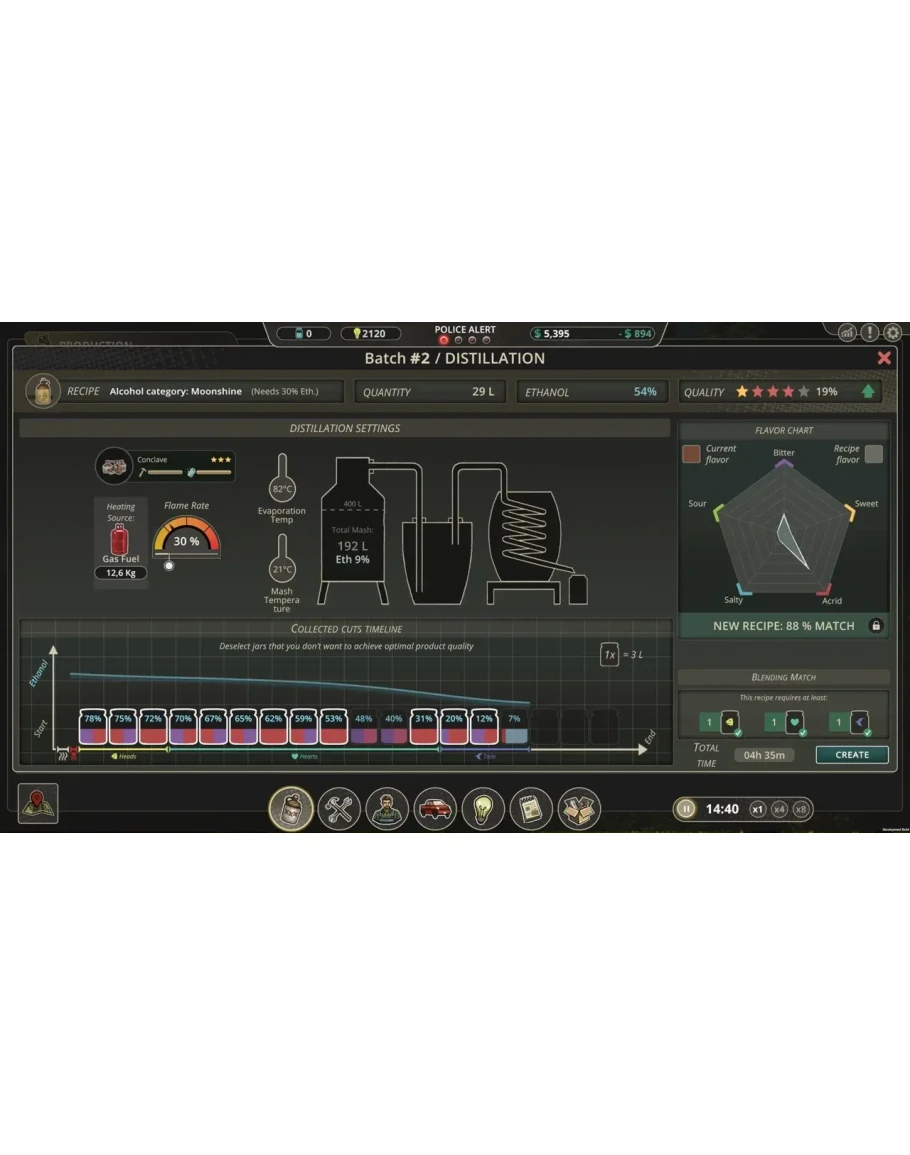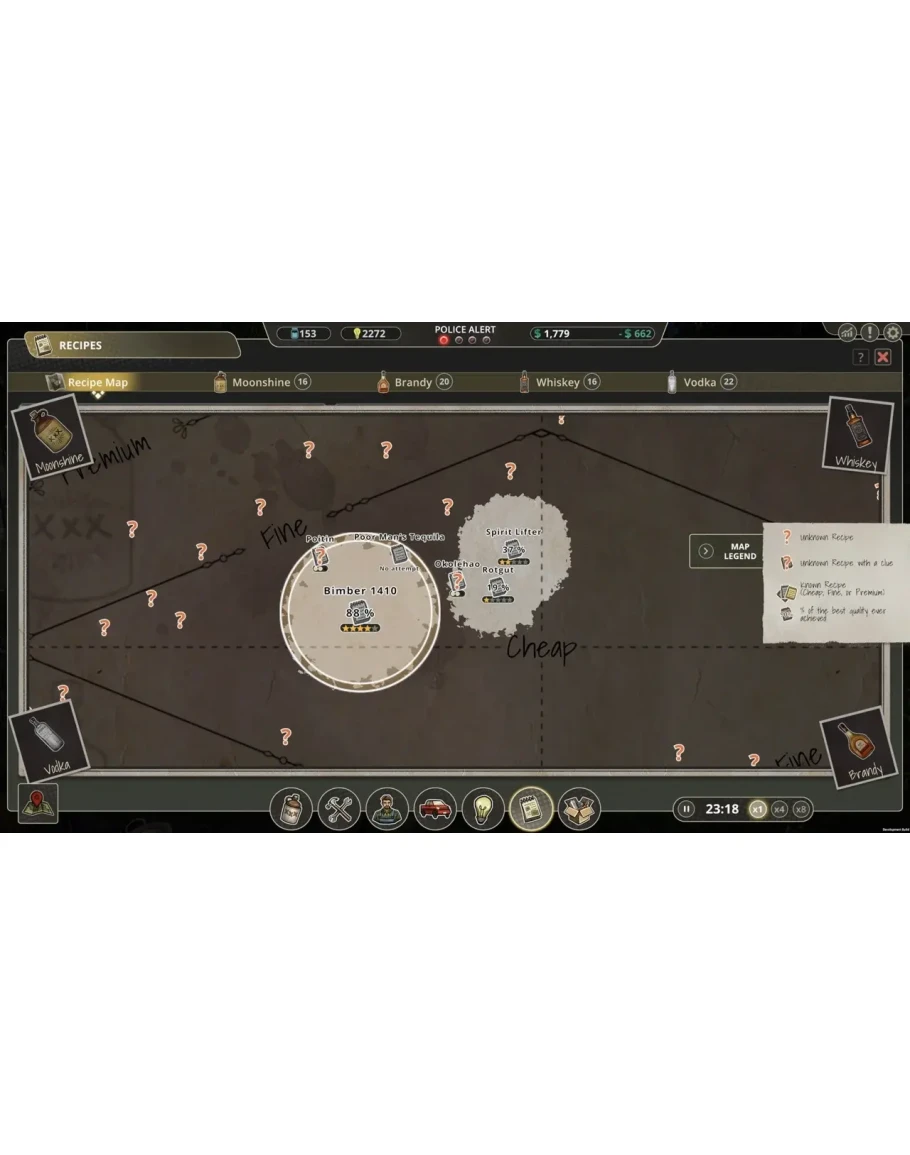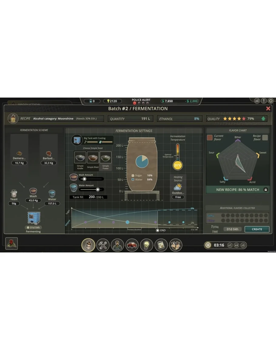 Мы постарались как можно более реалистично отобразить жизнь самогонщика. Вы будете управлять рабочими, которые будут создавать и обслуживать ваше оборудование, вы будете покупать ингредиенты, открывать технологии, планировать поставки и финансы, следить за тем, чтобы оставаться как можно более незаметным - и решать, кому доверять и с кем работать.