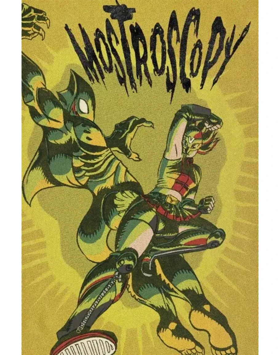 Mostroscopy is a fighting video game that takes up the aesthetics of the horror and Luchador films of Mexican cinema from the 1950s, with an eclectic roster of monsters and masked Luchadores and a simple gameplay style with a retro presentation.