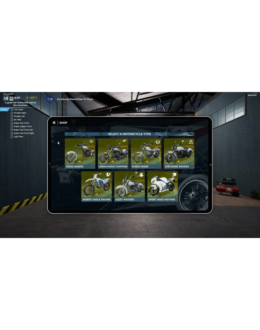 Станьте главой империи мотоциклетных механиков в реалистичной игре-симуляторе. Начните с небольшого гаража, улучшайте и покупайте более крупные с новыми возможностями. Принимайте заказы от клиентов, находите старые велосипеды и вдохните в них новую жизнь.