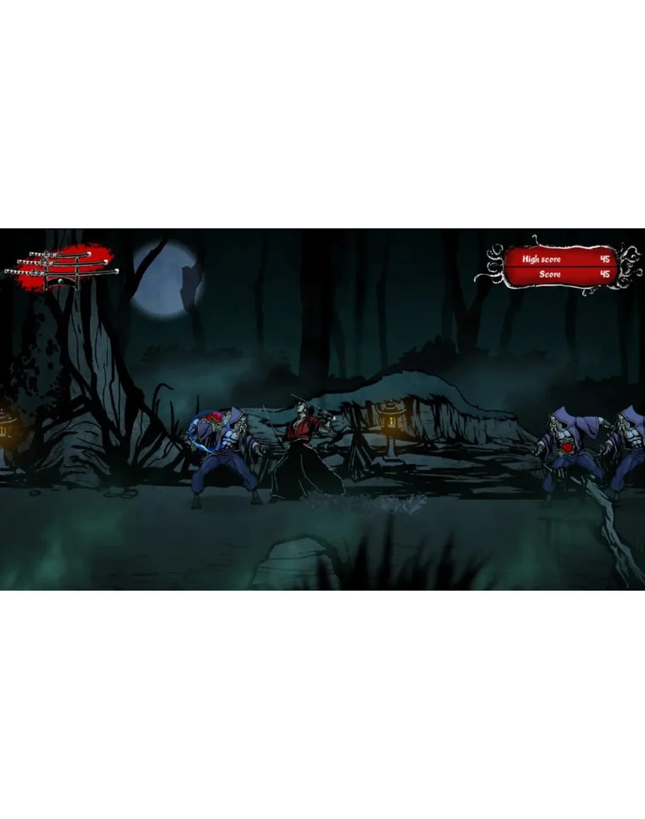 The ronin is a victim of a terrible curse that makes him a target for unspeakable monsters. In each match, hordes of monsters spawns endlessly and attack until there's no one standing.