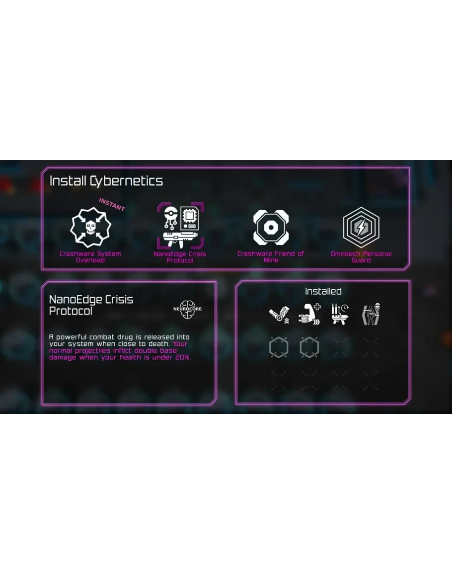 Neon Chrome — яростный шутер в стиле киберпанк с видом сверху и генерируемыми лабиринтами. Используйте оружие и киберспособности, чтобы прорваться через вражеский заслон. Попробуйте себя в различных ролях, таких как хакер или киберпсих. Повышайте параметры, исследуйте кибернетические улучшения и становитесь сильнее. После смерти придется начинать заново, а путь, ведущий к Overseer, постоянно меняется.