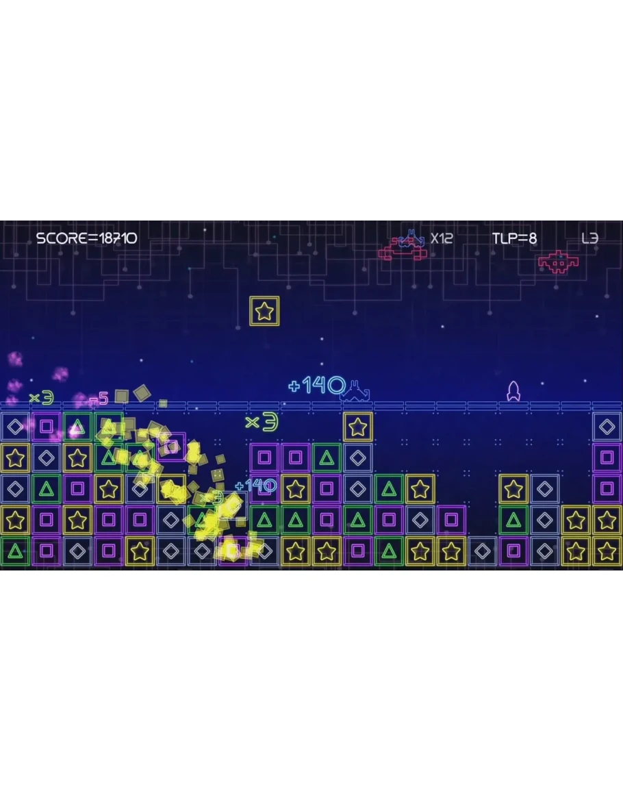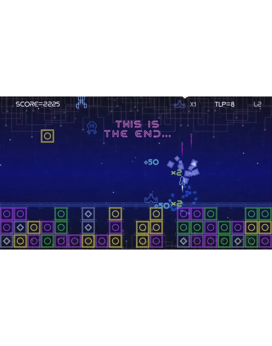 The goal is not only to try to survive as long as you can, but with the best score possible! Hit aliens before landing or you will lose points. It’s also better to destroy tiles in a combination instead of shooting them one by one, because the score will be higher. If you are hit by an alien or a tile you will lose a life and points. The game is over when you have run out of lives or there is no more space for new falling tiles.