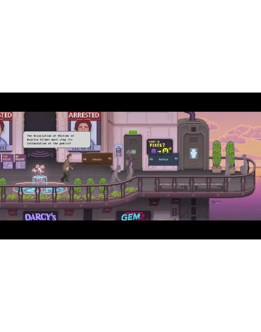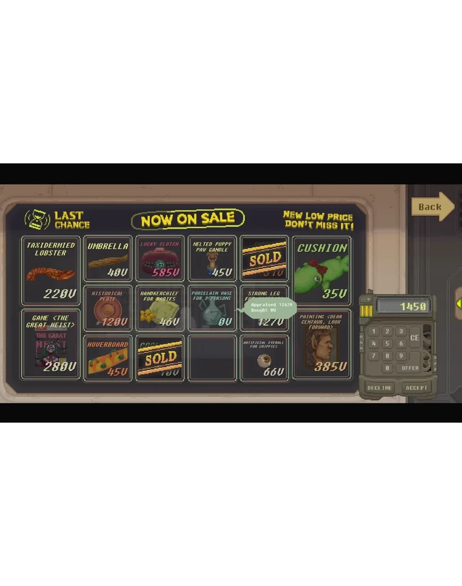 Изучая хитрости этого бизнеса и используя подсказки громогласного робота-помощника, вы должны зарабатывать деньги, повышать репутацию магазина и рассчитываться долгами, стараясь при этом избежать нежелательного внимания со стороны Ассоциации жертв алчности — AVAC.