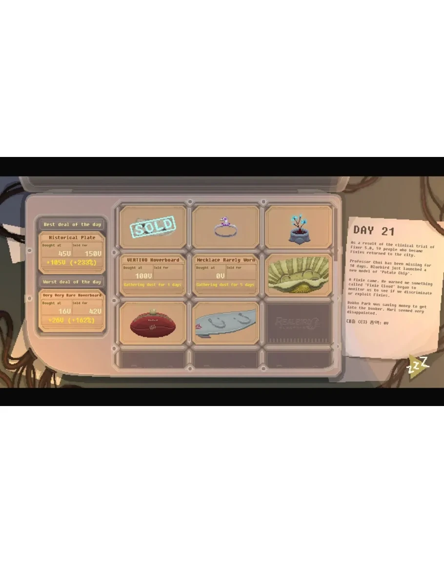 Вас ждет новая работа менеджера магазина Darcy’s – второго по известности магазина секонд-хэнда в Аджик Сити. Вместе с роботом-помощником вы будете оценивать, покупать и продавать разнообразные товары. Однако помните: зонтиками торговать нельзя. AVAC будет следить…