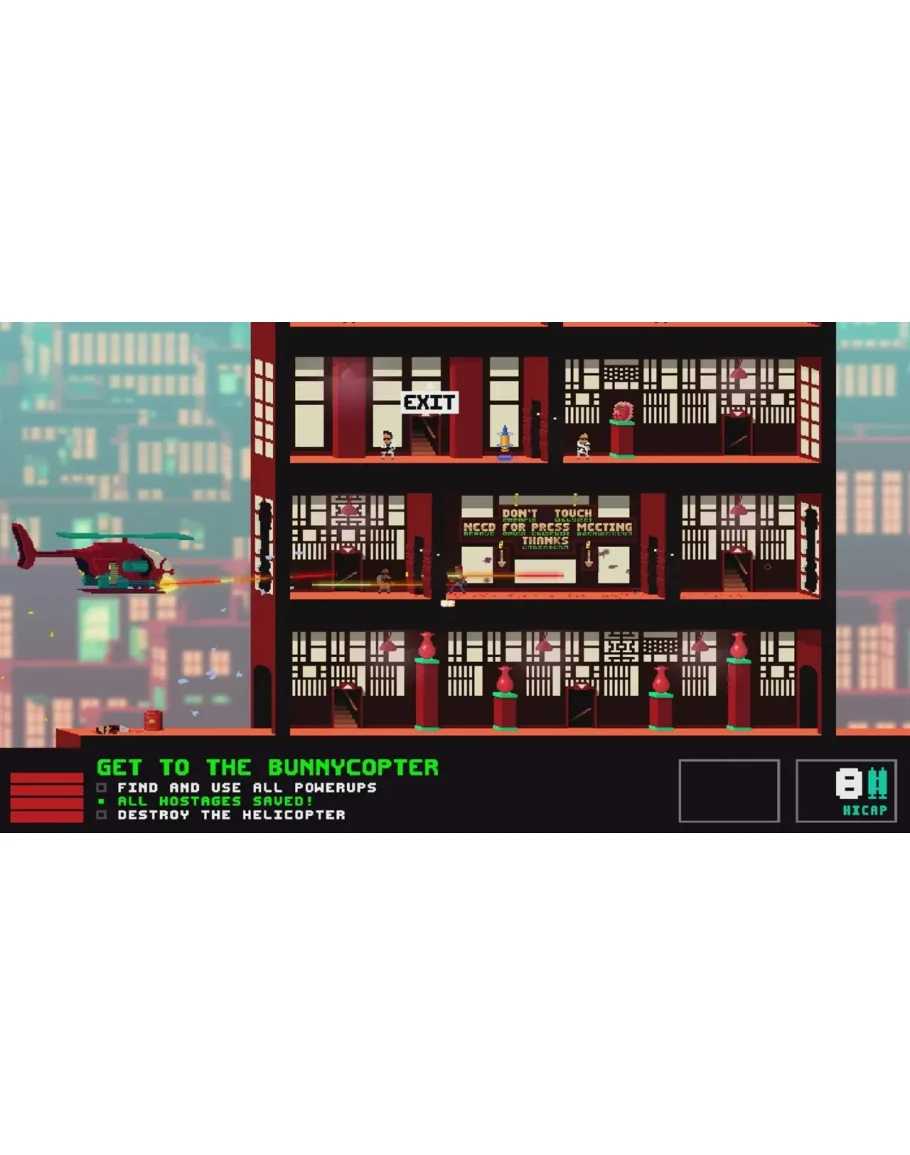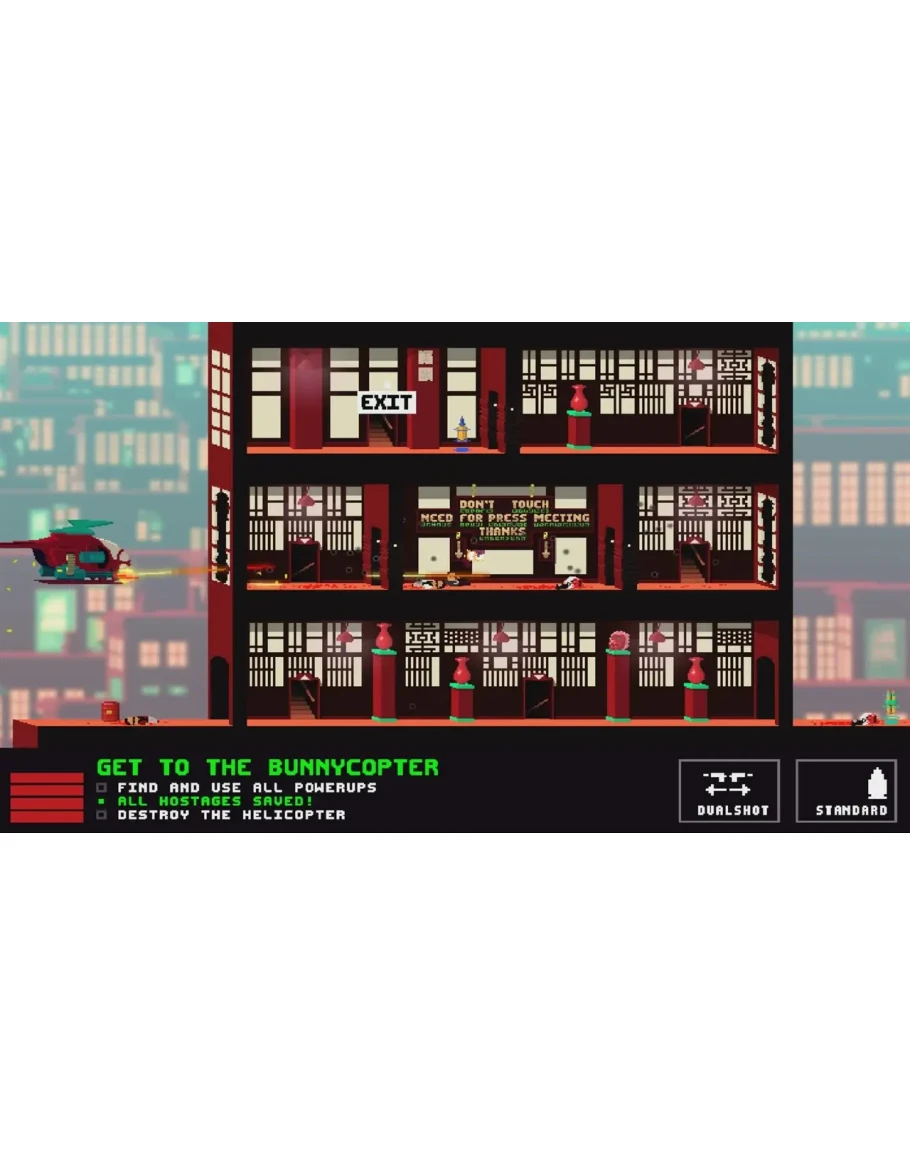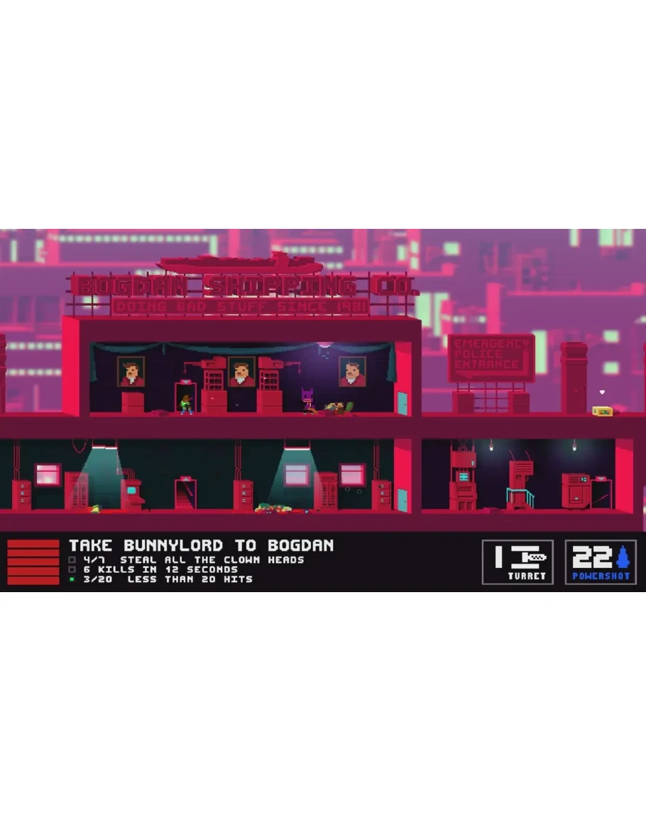 NOT A HERO: SUPER SNAZZY EDITION представляет кампанию "ME, MYSELF & BUNNYLORD", где вы играете за самого BunnyLord! Используйте разумные силы в неразумных пределах, чтобы исправить его злоключения в пространственно-временом континууме и восстановить баланс во вселенной, в новом приключении с 3 совершенно новыми миссиями, новыми врагами, настройками и испытаниями.