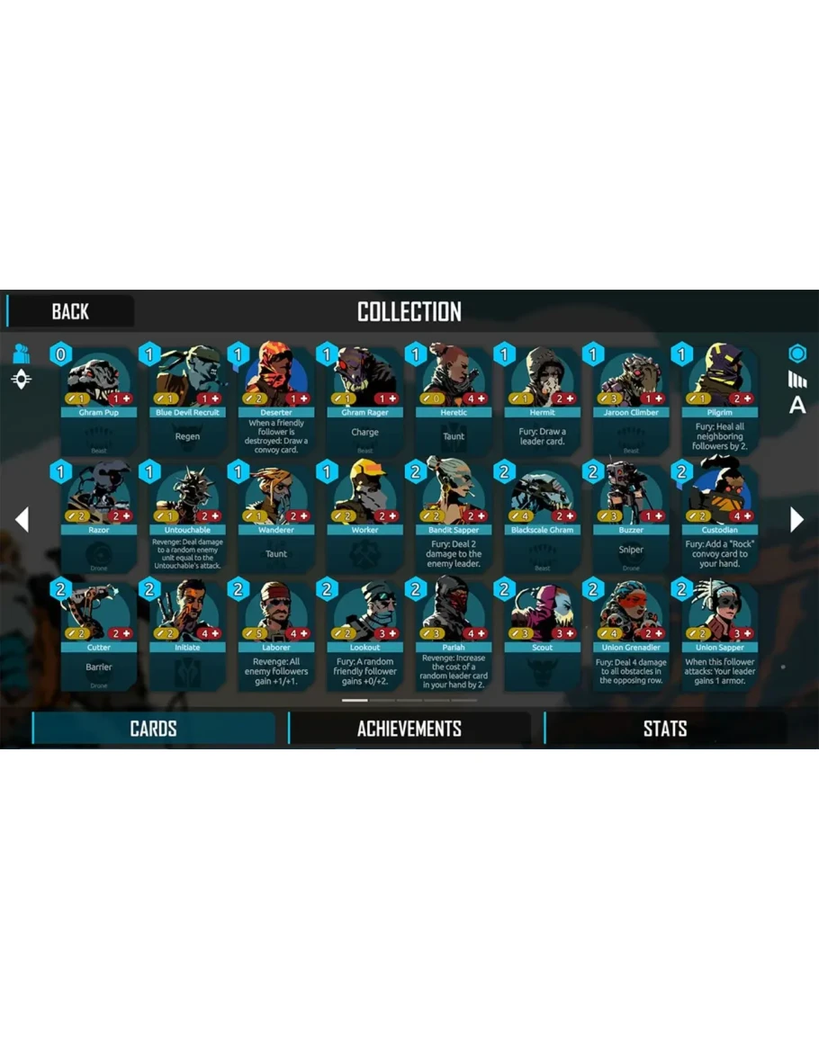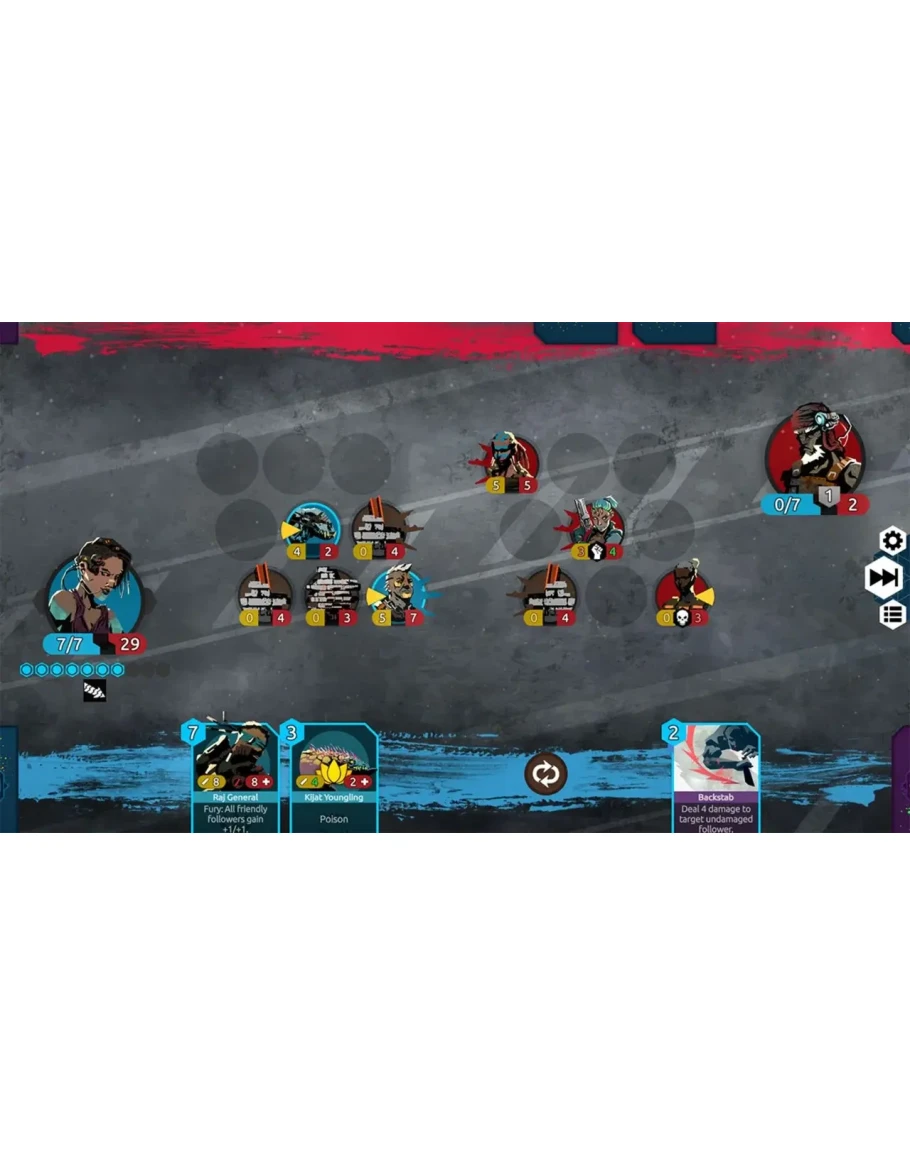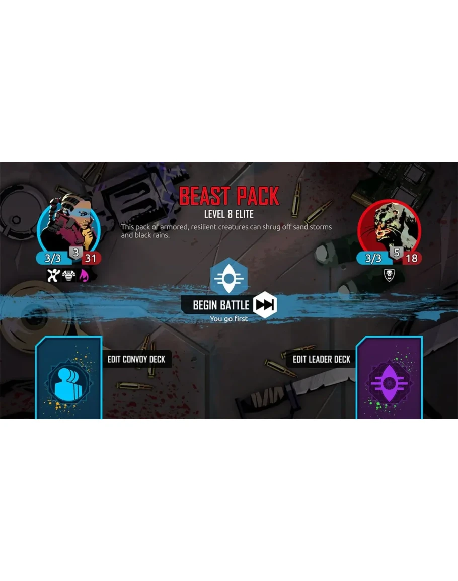 You will have to overcome some enemies to keep your convoy and resources together. And sometimes you may even want to pick a fight for righteousness or just for loot. Once in battle the game changes to the turn-based card game mode.