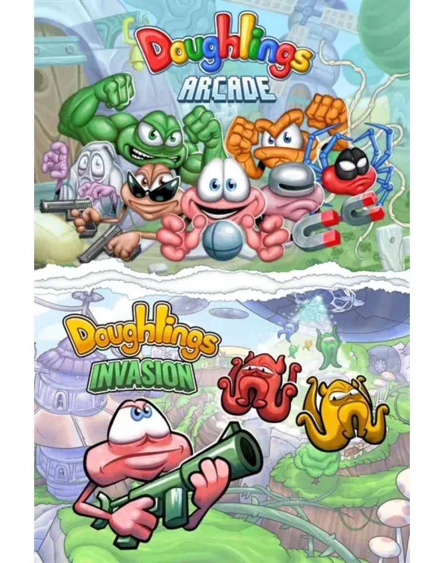 Этот пакет со скидкой включает в себя первую игру в серии Doughlings типа Brick Braker; Doughlings типа фиксированного стрелка- Аркада и продолжение игры; и игры под названием “Invasion“.