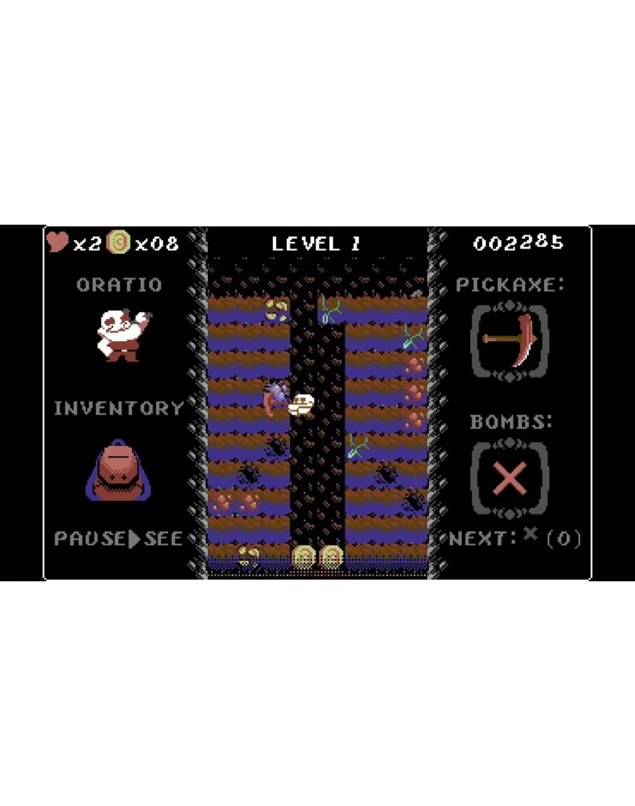 В этом процедурном 2D-платформере вам предстоит копать, добывать и взрывать, прокладывая свой путь вниз! Войдите в роль Оратио, миролюбивого гнома, любившего прогуливаться по шахтам со своей дорогой женушкой, пока демон не появился из ближайшей пещеры и похитил ее! Теперь предстоит гонка по шахтам, чтобы вызволить ее. Сможете ли вы спасти Гвендолину из лап демона Джонсона?