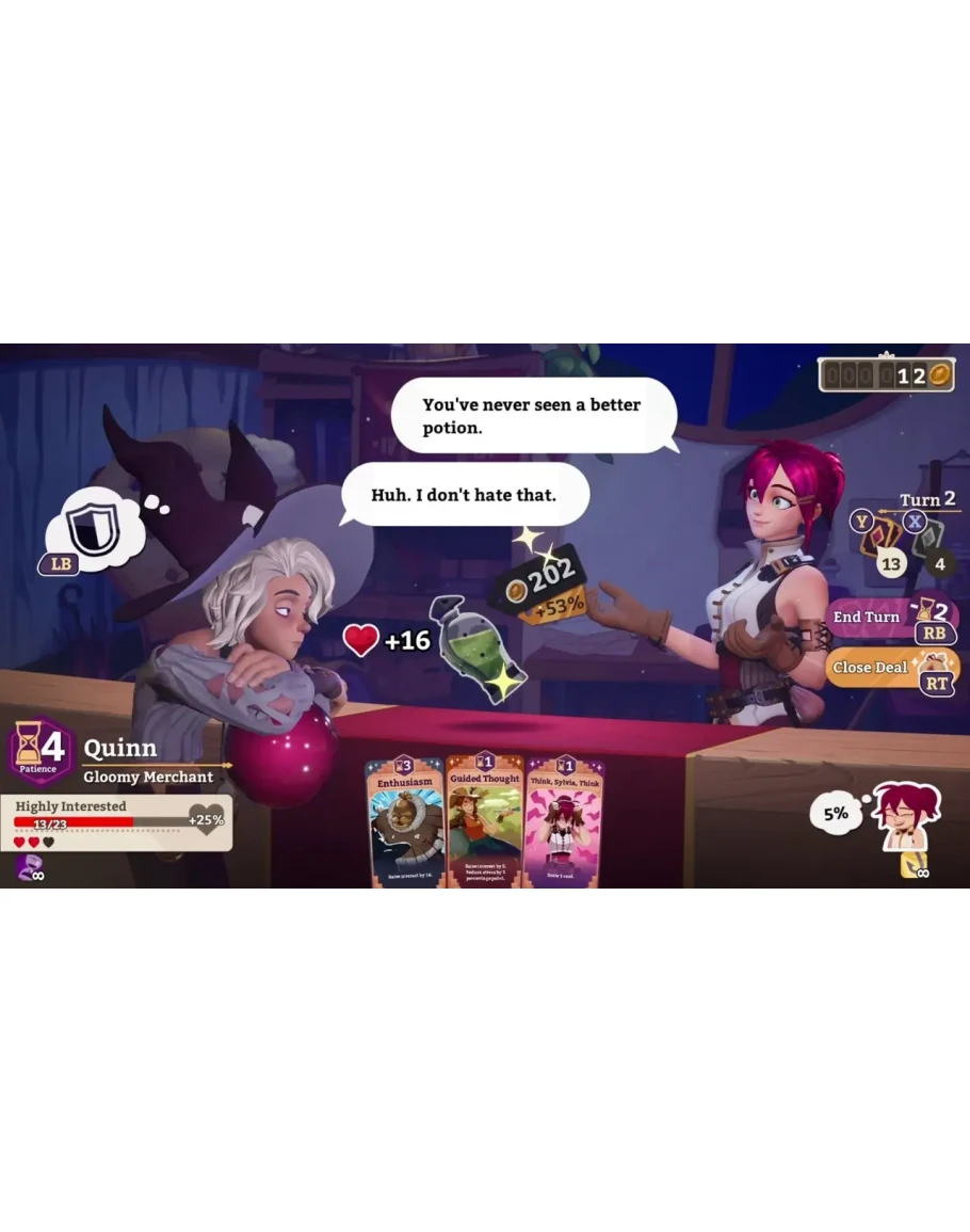 After the untimely death of her uncle, a penniless witch named Sylvia finds herself the inheritor of a potion shop—and massive debt. Although Sylvia is barely a novice, it’s up to her to build up the business and save herself. Thankfully, she won't have to go it alone. With help from some new friends, Sylvia will hone her negotiation skills, outsell her craftiest competitors, and make her shop THE number-one potion destination in Rafta. It’s all about mastering the finer points of Potionomics!