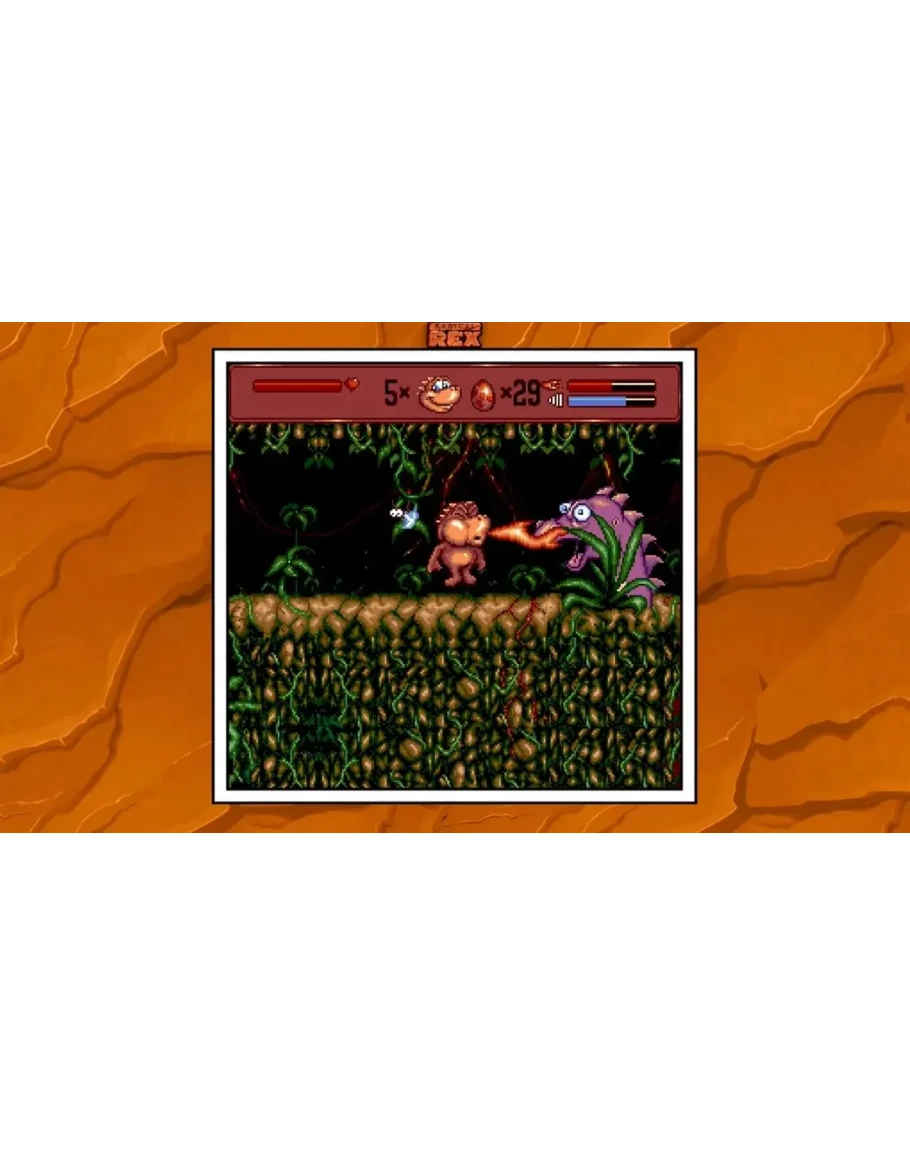 Rex keeps you groovin' while you keep him movin' past twenty of the meanest prehistoric nasties to rock his dino-world. No sweet for Rex - 'cuz he's too hip to be extinct!