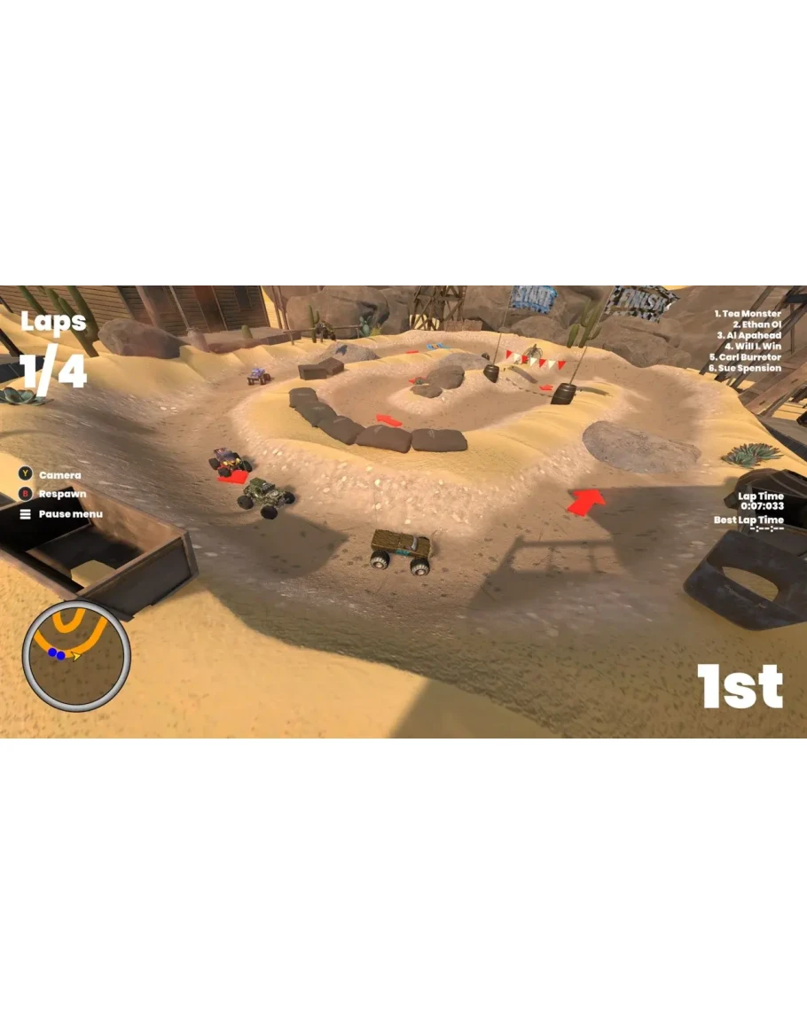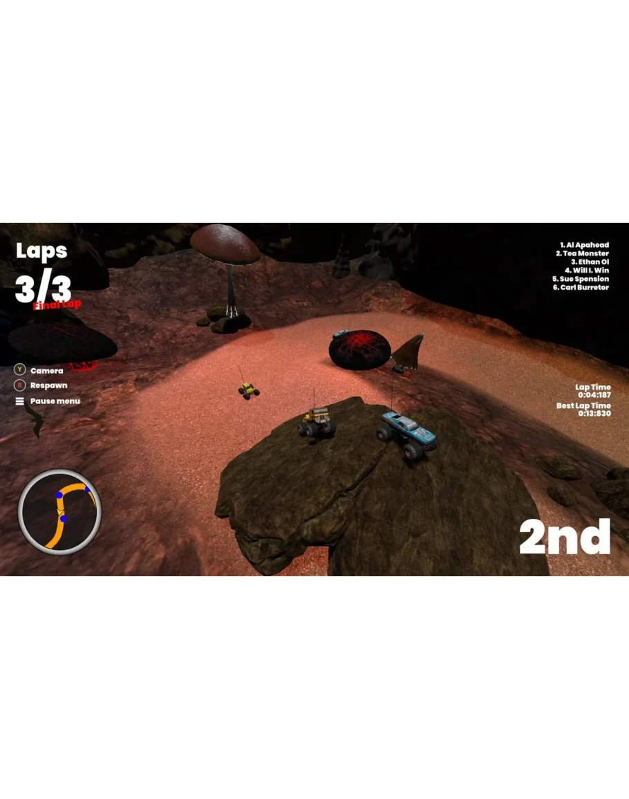 RC Rush is an exciting arcade racing game featuring radio-controlled trucks. Win races to unlock career events, compete in head-to-head battles to unlock new vehicles, and level up your way to becoming the ultimate R.C. champion!