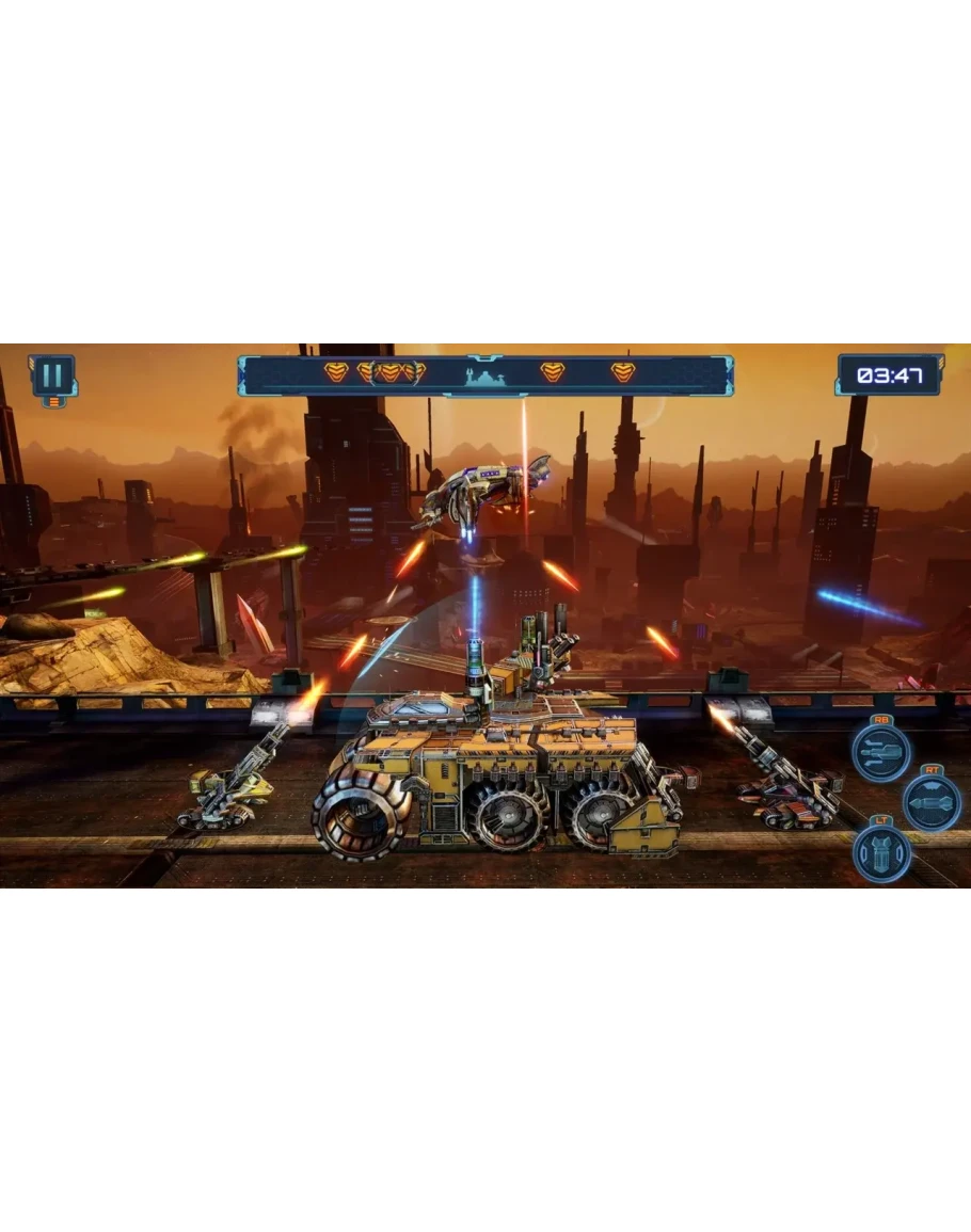 Pilot a cutting edge robot destroyer spaceship, the Red Siren. Defend steel mines on alien planets, fight hostile mechs, robots and jets in an endless war for sky dominance.