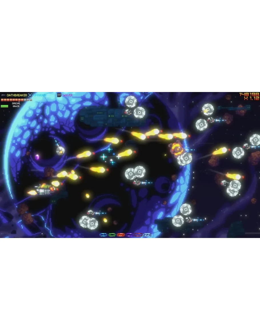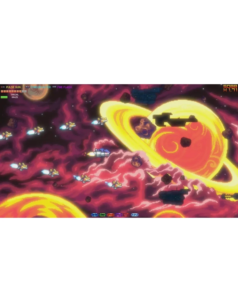 Rick Henderson предлагает несколько режимов сложности для максимальной доступности, полезные руководства, которые помогут тебе начать и глубокую систему подсчета очков с множителями, рангами, бонусами за рисковую игру и дополнительными умениями. Выбери корабль, который подходит твоему стилю игры, экипируй 27 уникальных видов оружия, улучшай снаряжение и проверь свои навыки в битвах с десятками типов врагов, наслаждаясь потрясающей синтвейв-музыкой.