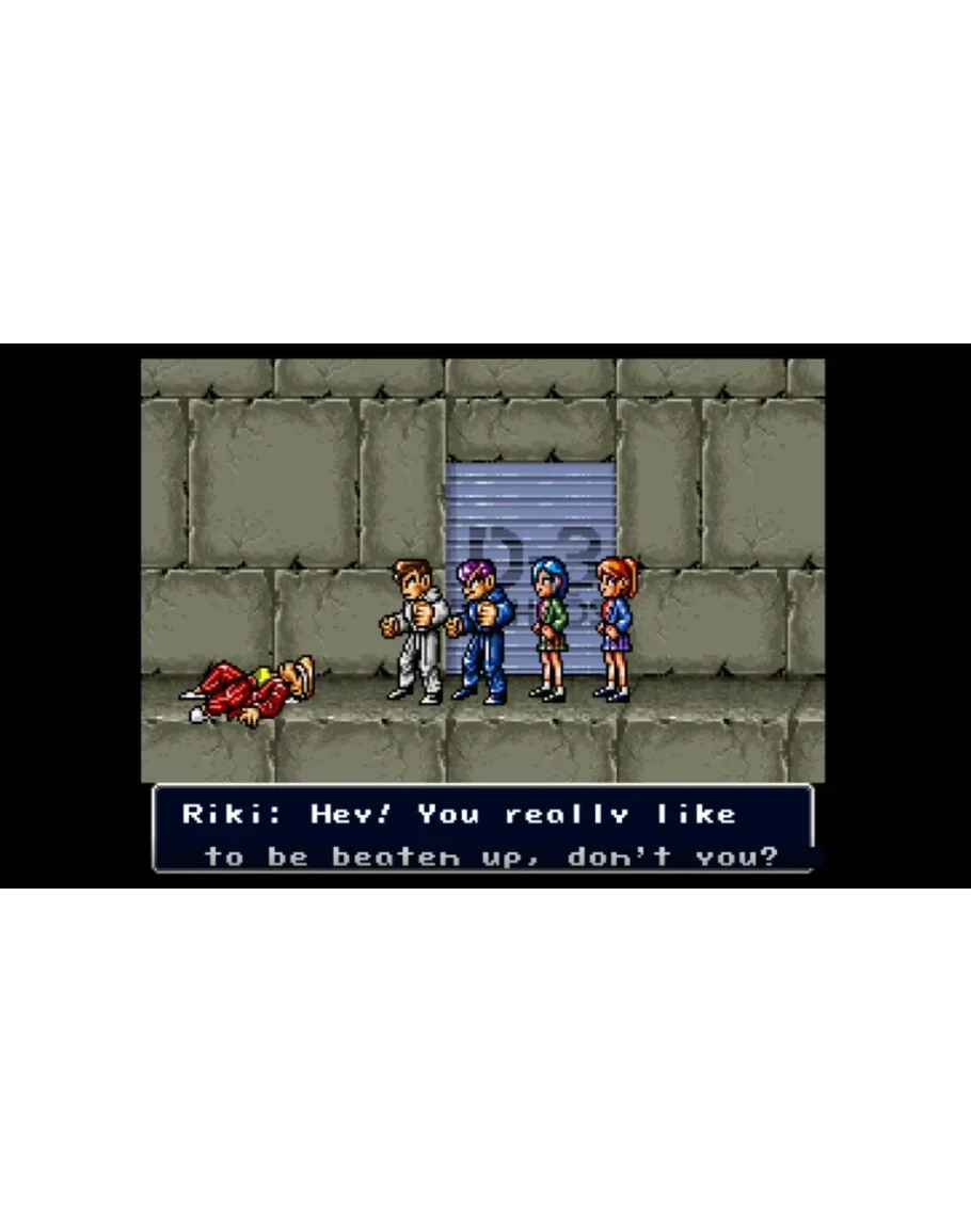 Join Kunio, Riki, Misako, and Kyoko for bone-crunching, 16-bit, co-op beat-'em-up action - translated and released outside of Japan for the first time! Experience the origin of the River City Girls story as the hot-blooded heroes attempt to clear their names of a heinous crime by uppercutting, spin-kicking, stomping, and slamming every thug and two-bit criminal that gets in their way! Rock the jailhouse, clean up the carnival, and raise hell on the highway! The original 1994 graphics, soundtrack, and gameplay are augmented with new opening and closing motion-comic cutscenes, a new animated intro, and additional music by Megan McDuffee and DEMONDICE. Discover River City's past with this lost classic!