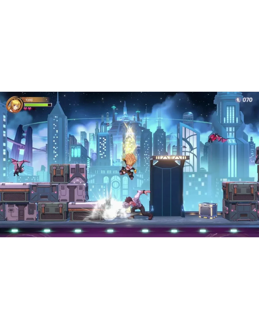 Dive into an explosive new RWBY action-adventure! Instantly switch between all four members of Team RWBY — Ruby Rose, Weiss Schnee, Blake Belladonna, and Yang Xiao Long — and use their signature weapons and Semblances to battle the Creatures of Grimm and other foes in this in-canon story set during RWBY Volume 7. Featuring voiceovers from RWBY's original cast, all-new cutscenes from the team behind the show, and a brand-new theme song by Jeff Williams and Casey Lee Williams, RWBY: Arrowfell lets you explore Atlas and the surrounding areas to solve environmental puzzles, slay massive bosses, power up with Skill Points, and interact with characters such as Penny, Winter, and General Ironwood, as well as the enigmatic new team of Huntresses, Team BRIR! Only Team RWBY can protect Remnant from a mysterious new threat in RWBY: Arrowfell!