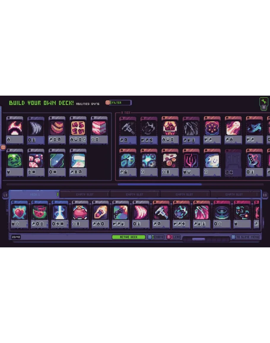 В Slime 3K в стандартную формулу survivor-like мы постарались добавить больше стратегической глубины и возможность экспериментировать. Разблокируйте, улучшайте и сочетайте разные карточки, чтобы собрать свой уникальный арсенал безумных орудий. Вы сами выбираете, какие способности будут доступны в каждом отдельном сражении!