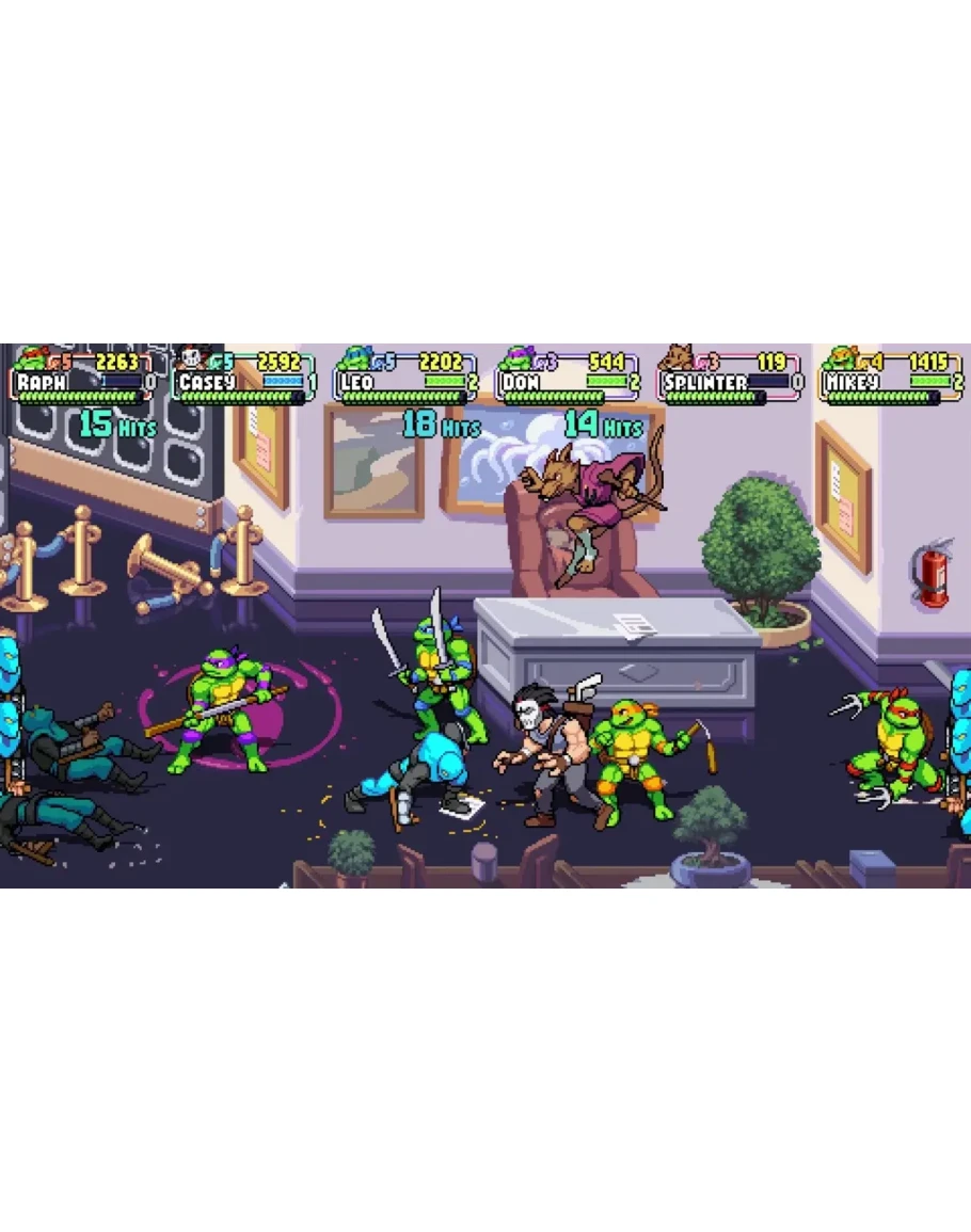Teenage Mutant Ninja Turtles: Shredder’s Revenge features groundbreaking gameplay rooted in timeless classic brawling mechanics, brought to you by the beat ’em up experts at Dotemu (Streets of Rage 4) and Tribute Games. Bash your way through gorgeous pixel art environments and slay tons of hellacious enemies with your favorite Turtle, each with his own skills and moves - making each run unique! Choose a fighter, use radical combos to defeat your opponents and experience intense combats loaded with breathtaking action and outrageous ninja abilities. Stay sharp as you face off against Shredder and his faithful Foot Clan alone, or grab your best buds and play with up to 6 players simultaneously!