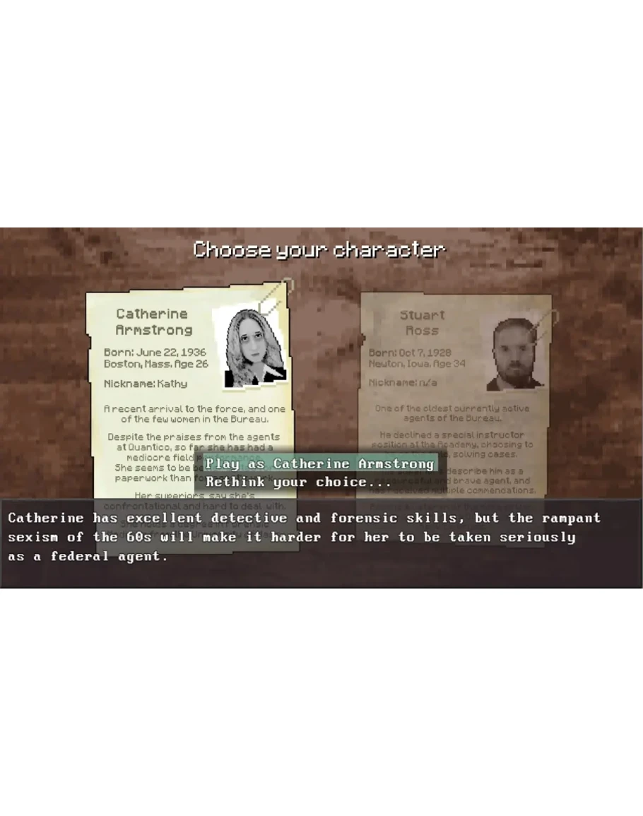 Выберите роль федерального агента Кэтрин Армстронг, молодого новобранца с превосходными научными навыками, или Стюарта Росса, искушнего ветерана. Их уникальные навыки и индивидуальности изменят ход истории.