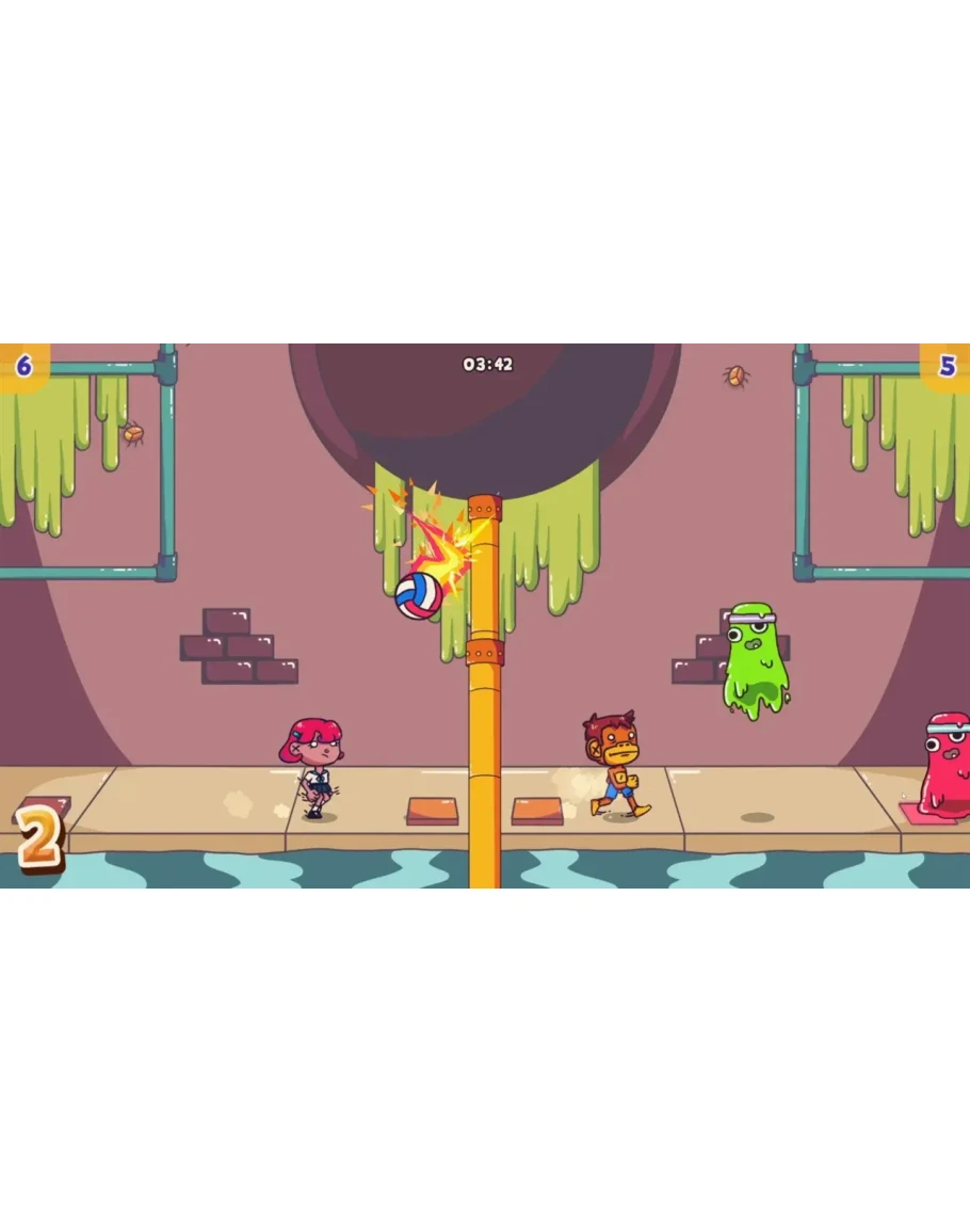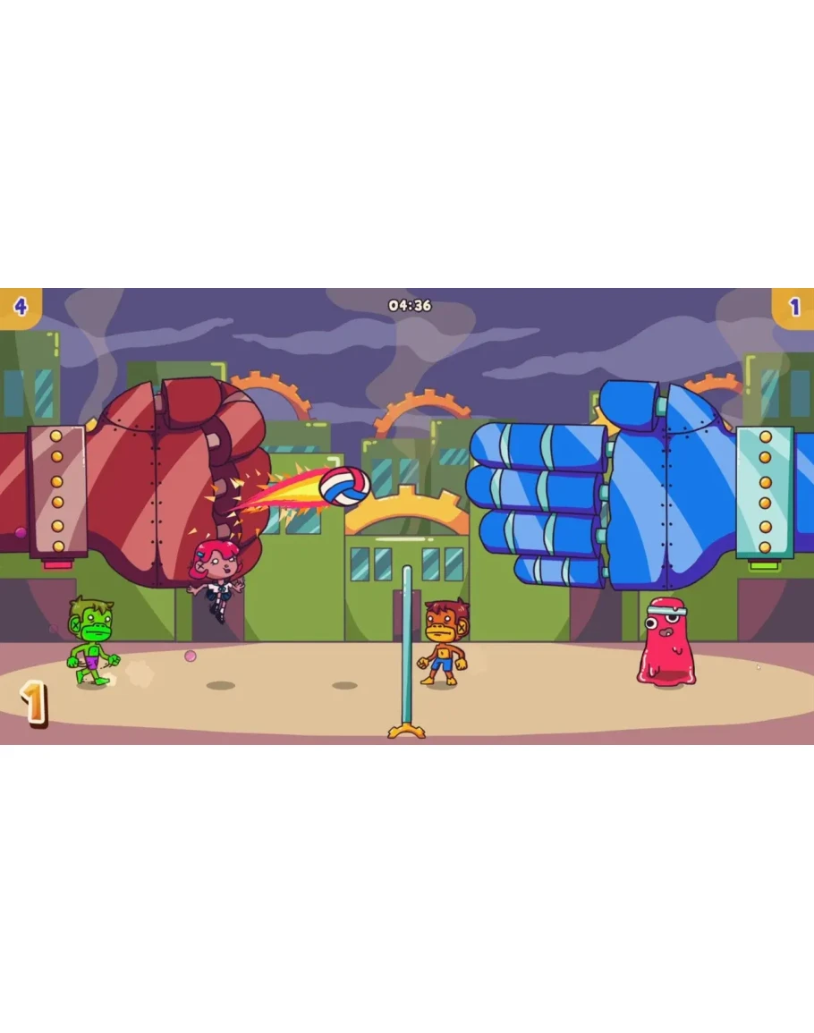 Simplified arcade volleyball where you hit the ball and pass it to your opponent's field. However in Volley Pals, you can also do many other interesting things, which may not be welcomed in classic volleyball. Including but not limited to: invading your opponent’s area, using your opponent's service before they do, increasing the height of the net, playing rock/paper/scissors, and various other things that can be seen in the trailer.