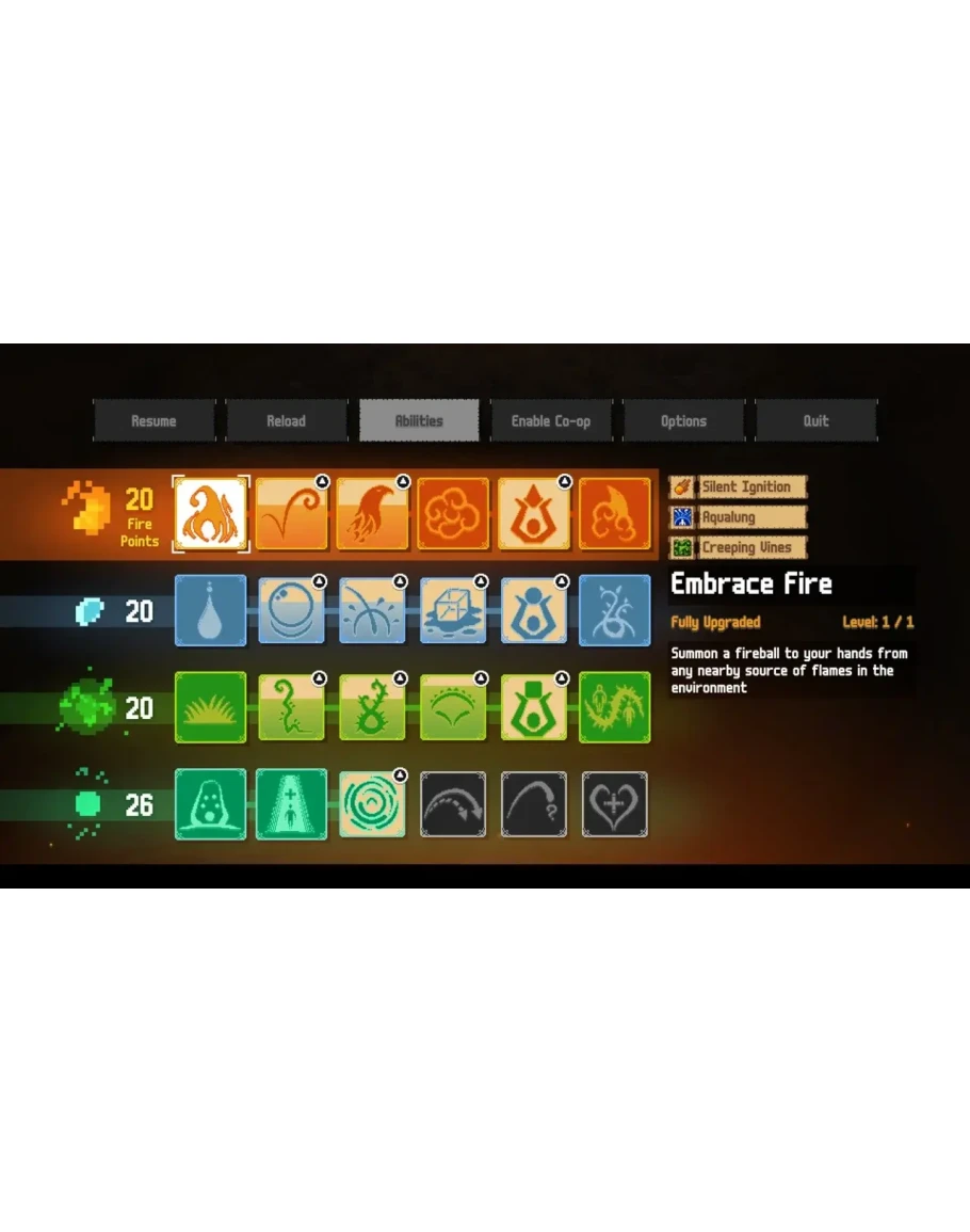 - Подчините себе стихии. Со временем ваша связь со стихиями будет расти, открывая вам новые возможности. Но помните: огонь способен поглотить все, что окажется на его пути, — включая и вас!
