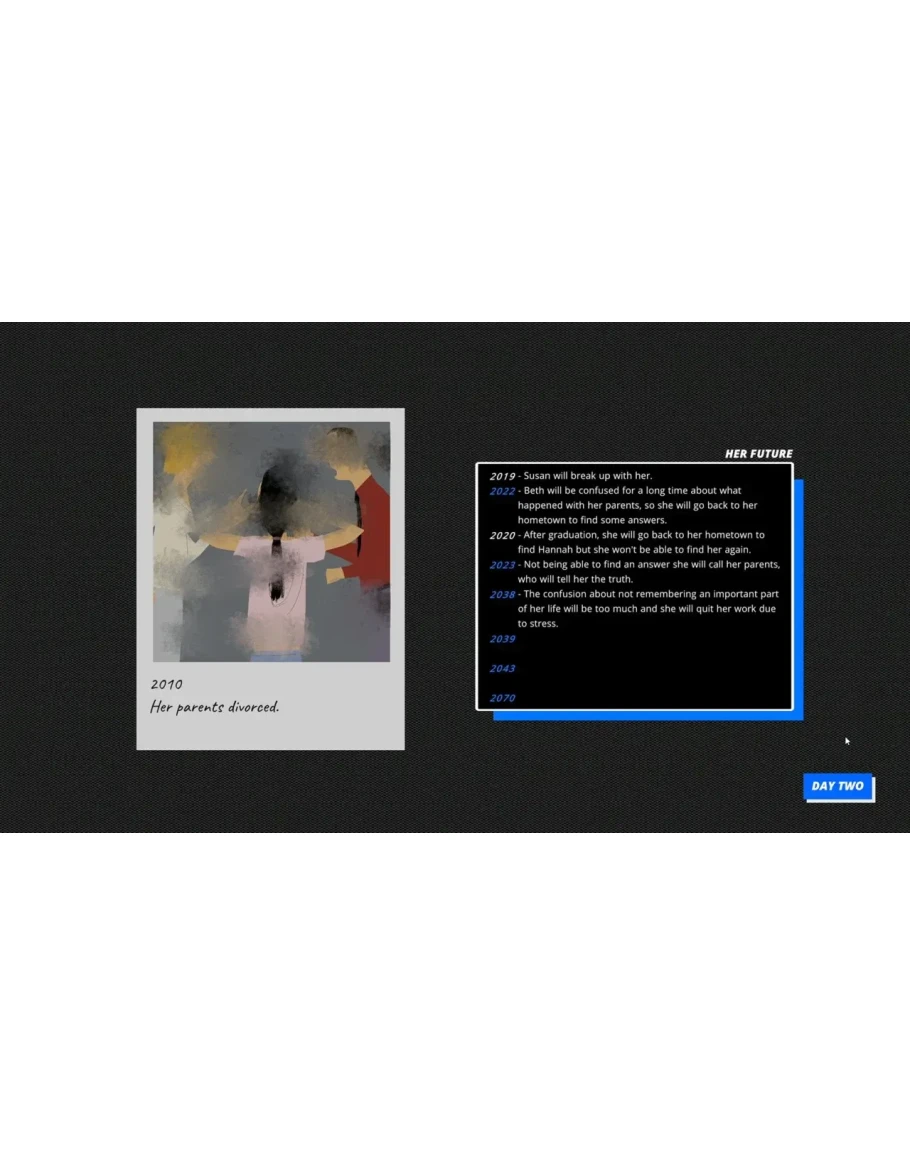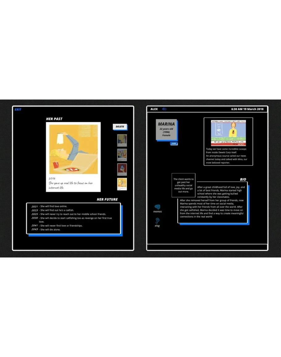 Our customers come to us to solve their current problems. Your task is to dig into their past and find the right memories to erase to change their present and future.