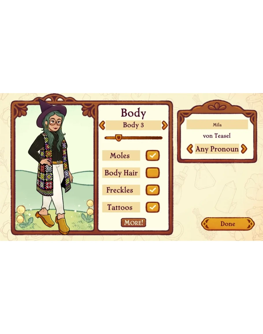 Design your troublesome witch however you see fit, with a ton of customization options. There’s no excuse for not looking your best!