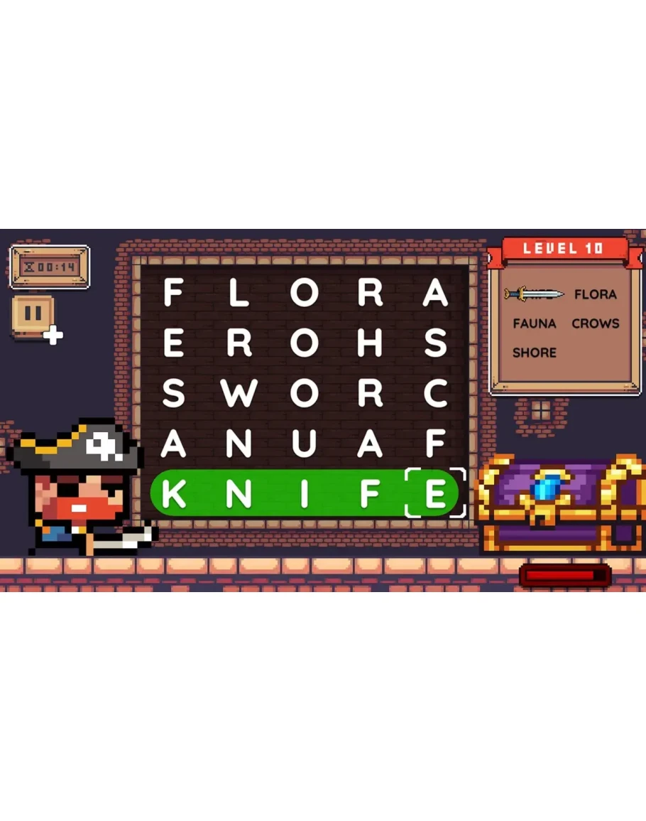 Set sail on a thrilling puzzle adventure where the seas are filled with hidden words and untold treasures. In Word Quest: Pirates, you’ll solve exciting word searches to unlock treasure chests, outsmart rival pirates, and uncover legendary loot. With each level, the challenge grows as you chart your way across mysterious islands and ancient maps. Do you have what it takes to become the ultimate pirate word master?