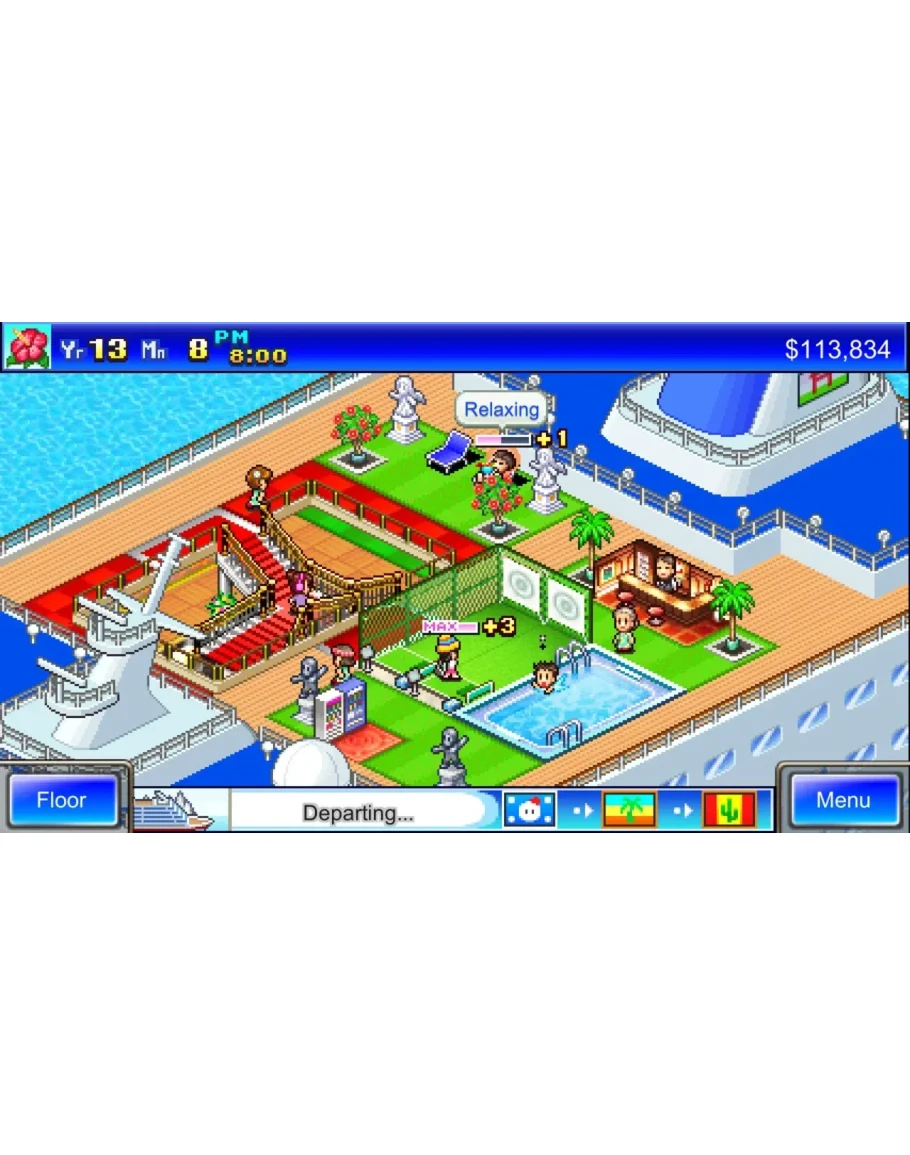 Put the right facilities next to each other and you'll score big points with passengers and reviewers. Amass enough fame and even celebrities will come flocking when you're in port!